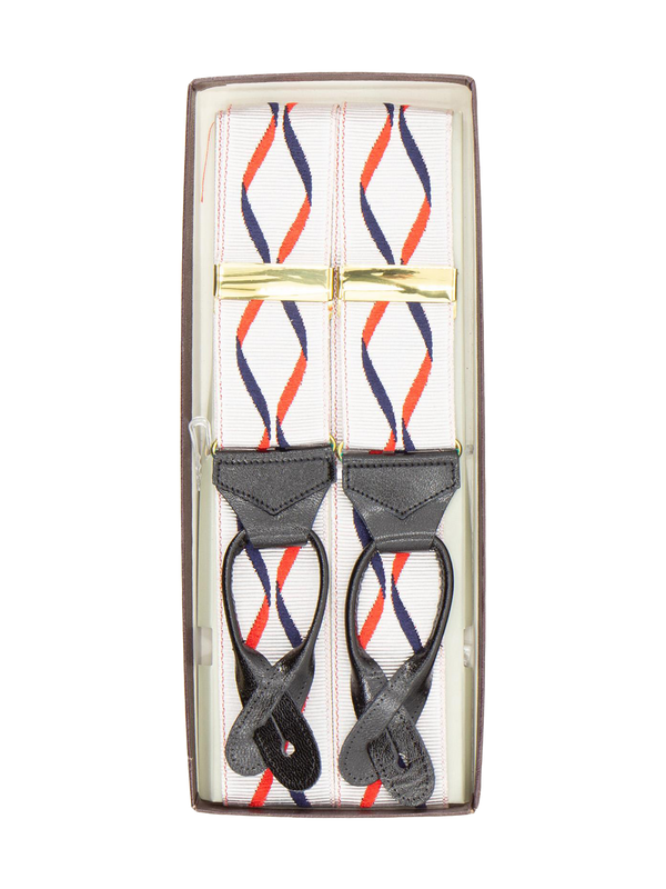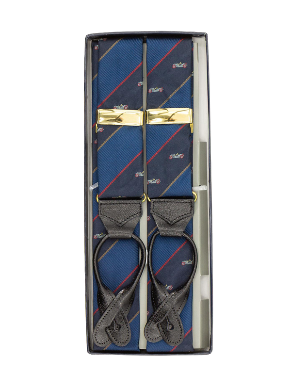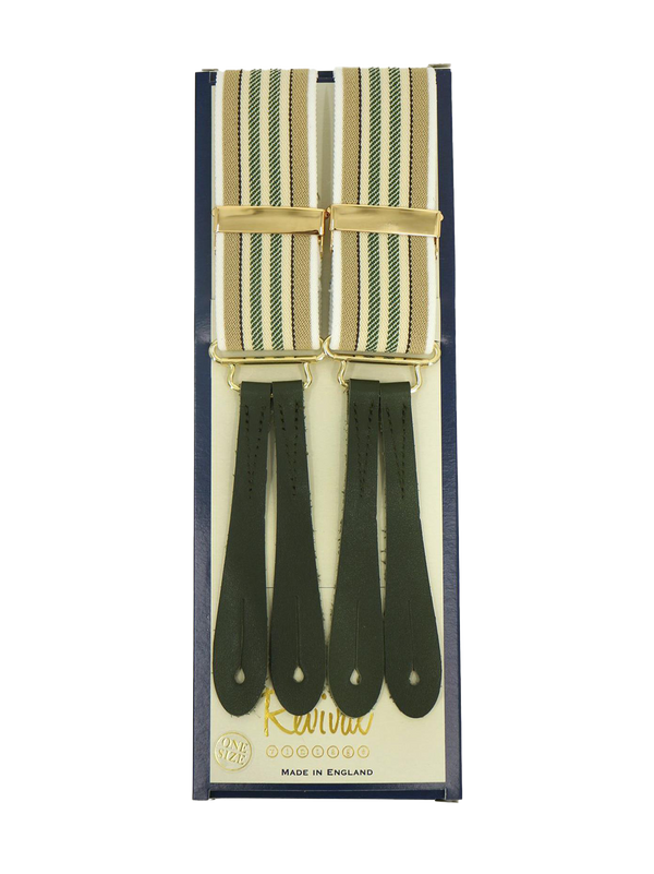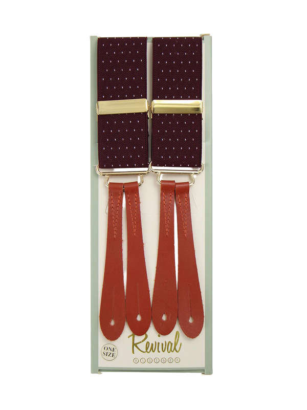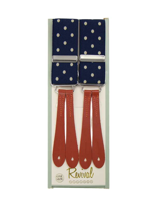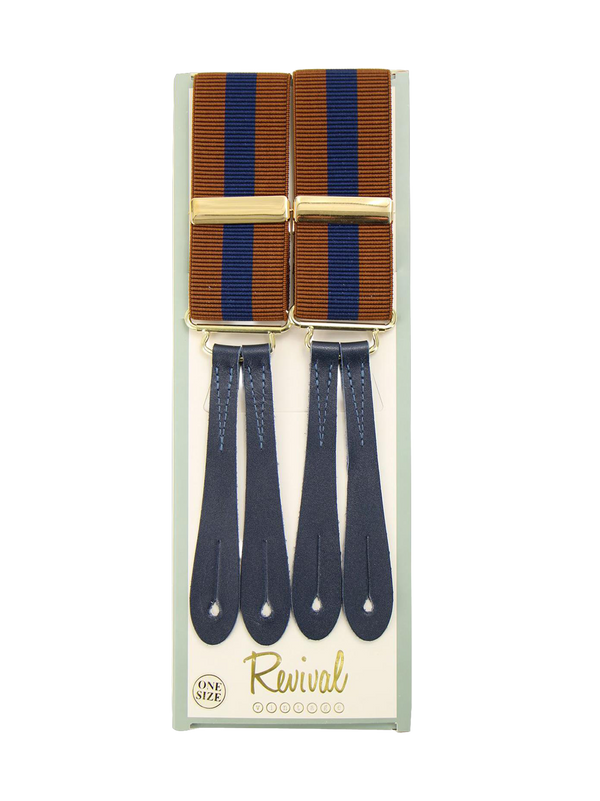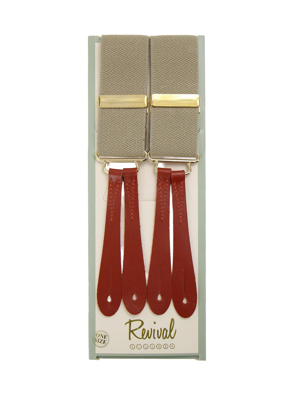 Vintage and Revival retro trouser braces come in many colours, stripes and patterns. We opt for traditional designs of the 40s 50s and 60s. Metal clips are easily attached to any vintage trousers but leather loop styles are essential to give you an authentic mid-century look.
