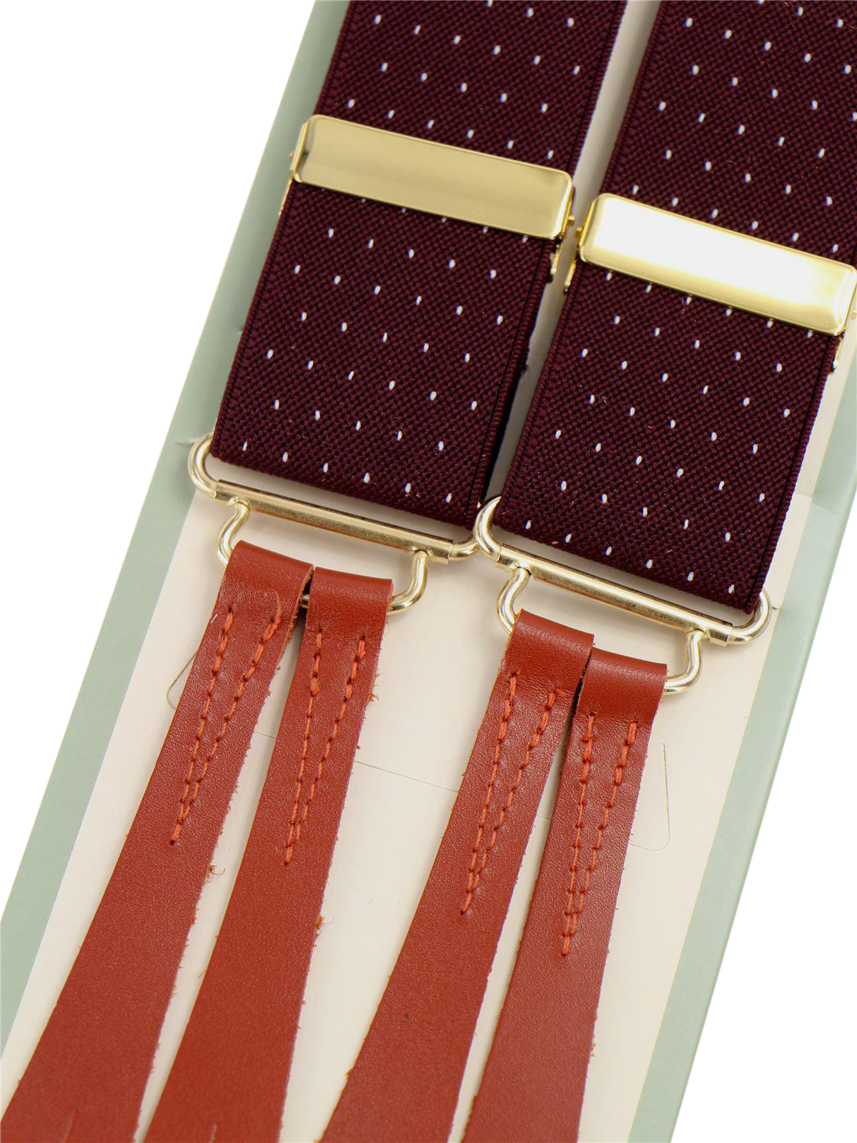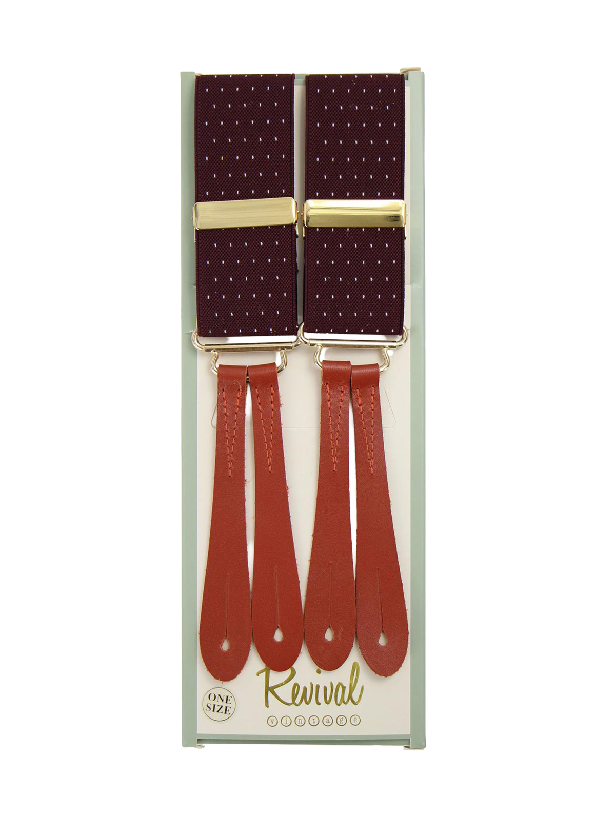 Burgundy Pin Spot Vintage Style Braces with Leather Loops
