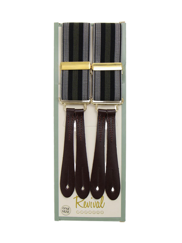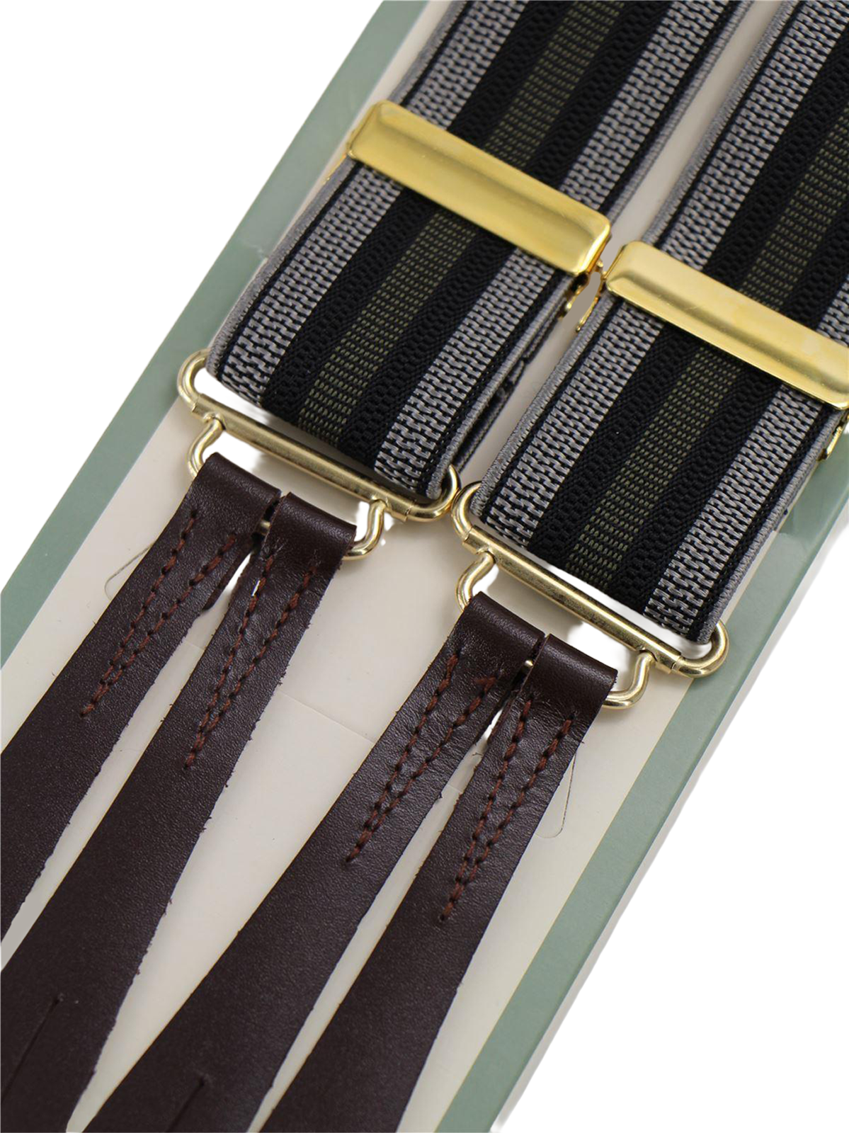 Khaki & Black Stripe Braces with Dark Brown Leather Loops