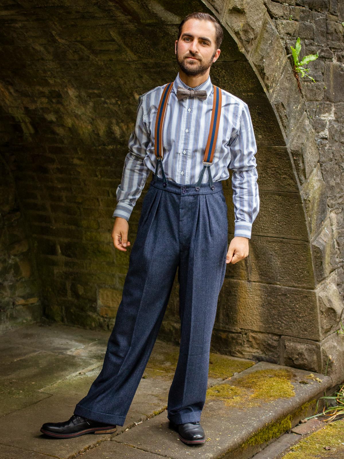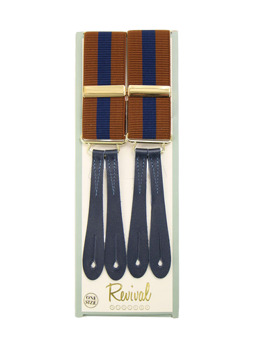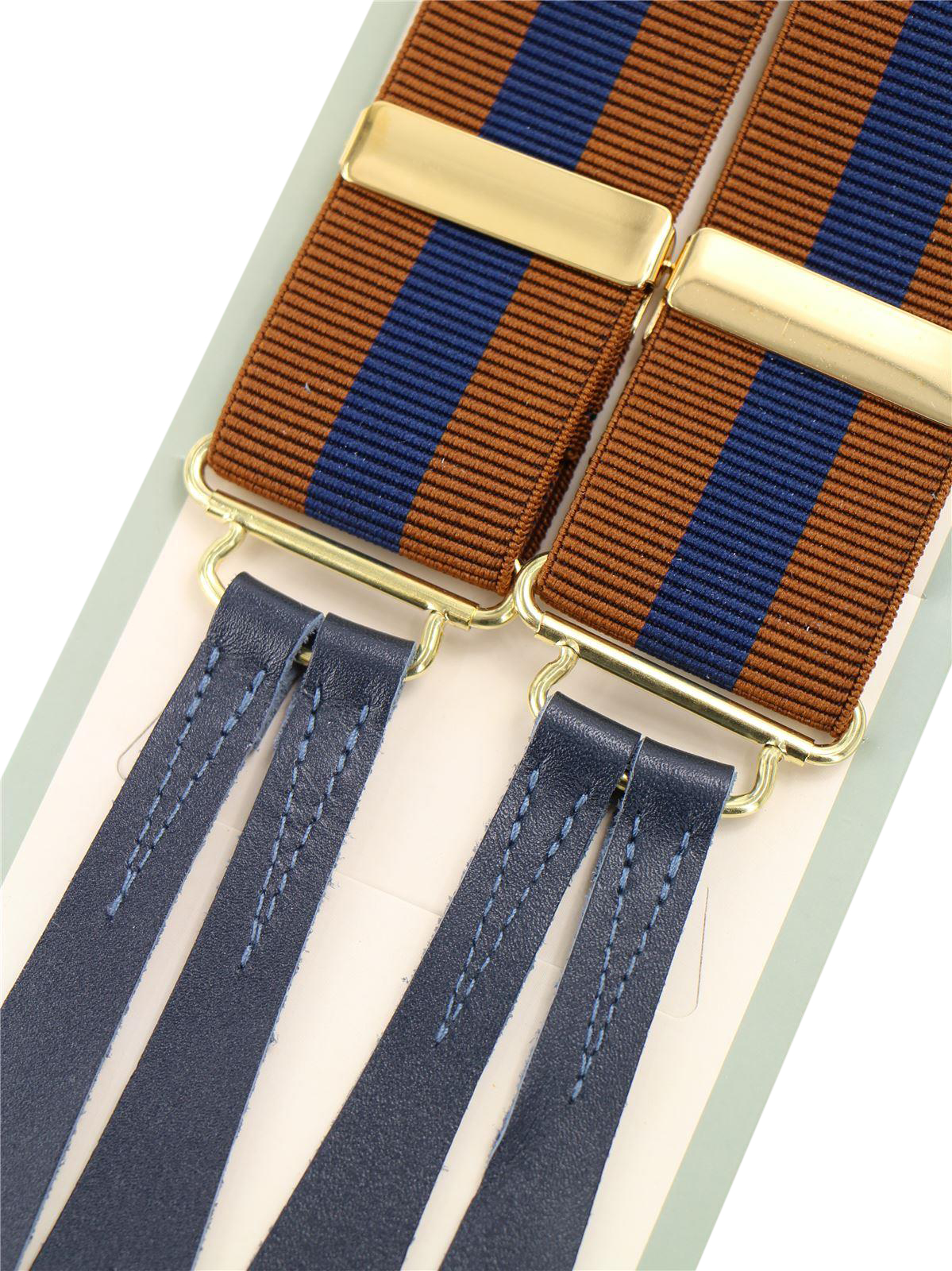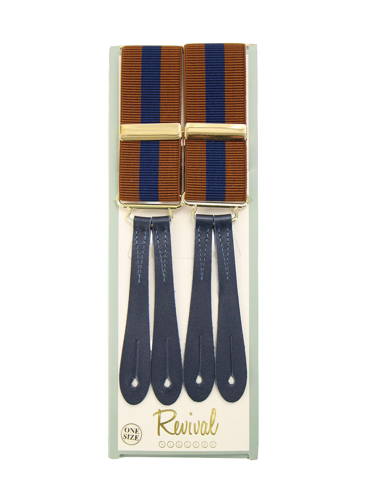 Navy & Rust Stripe 1940s Style Braces with Blue Leather Loops