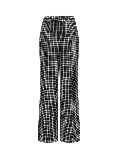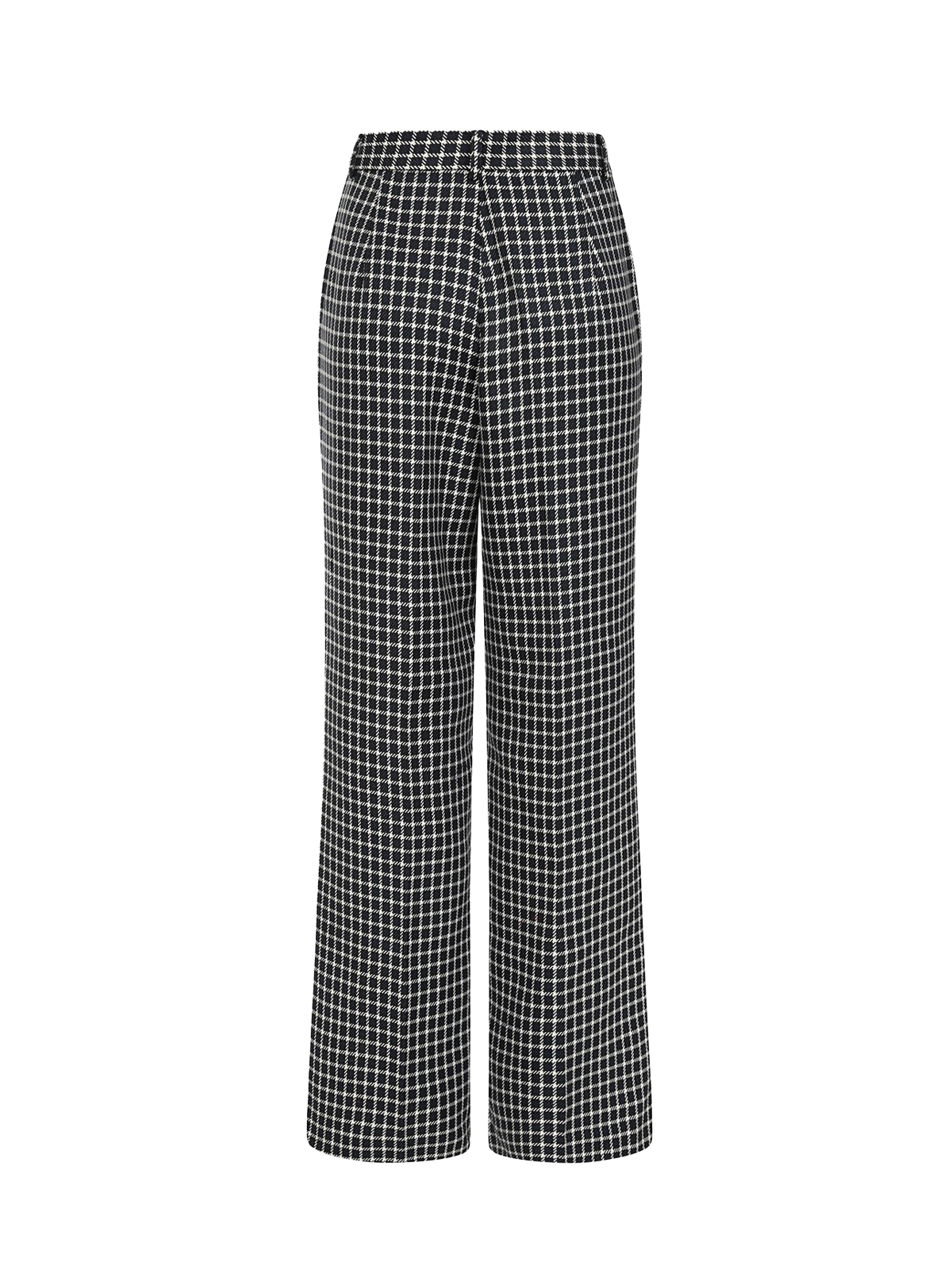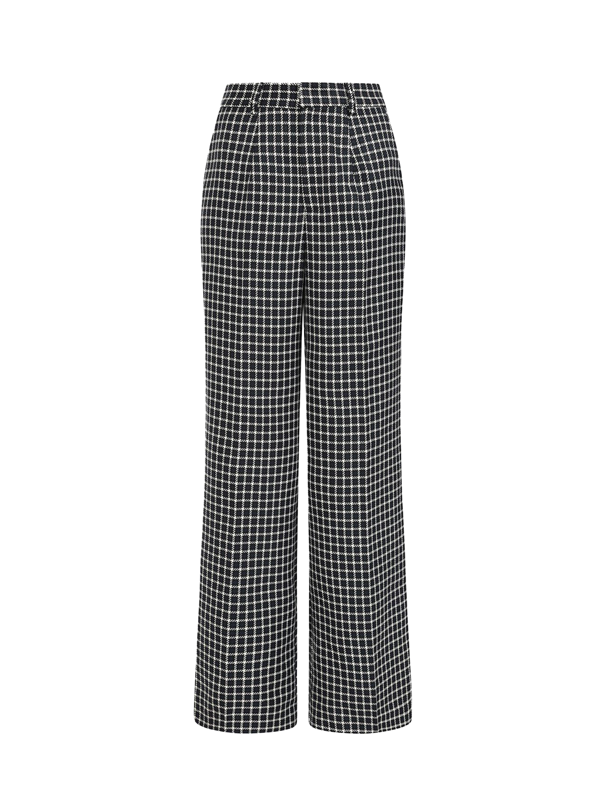 These 1950s inspired Check Trousers offer a beautiful nod to classic midcentury style. Crafted from a woven fabric blend in a navy check pattern, these high waisted trousers feature front tuck detailing that enhances their structured silhouette, full of vintage character and charm.