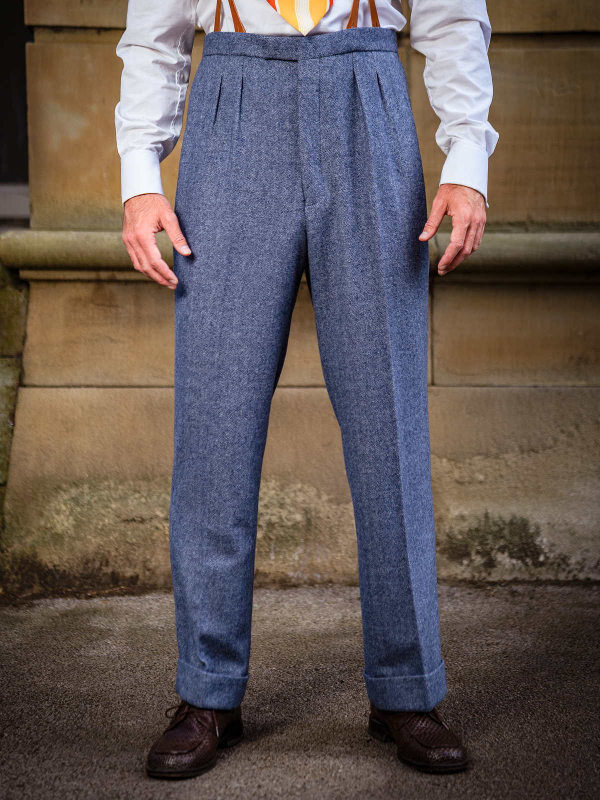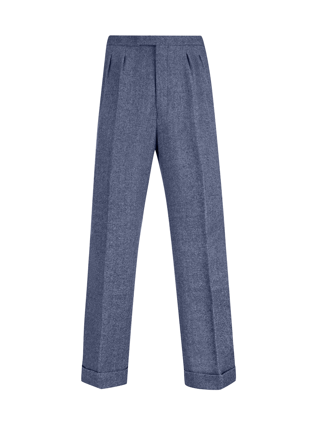 1940s Deliverance Demob Trousers - Blue Herringbone