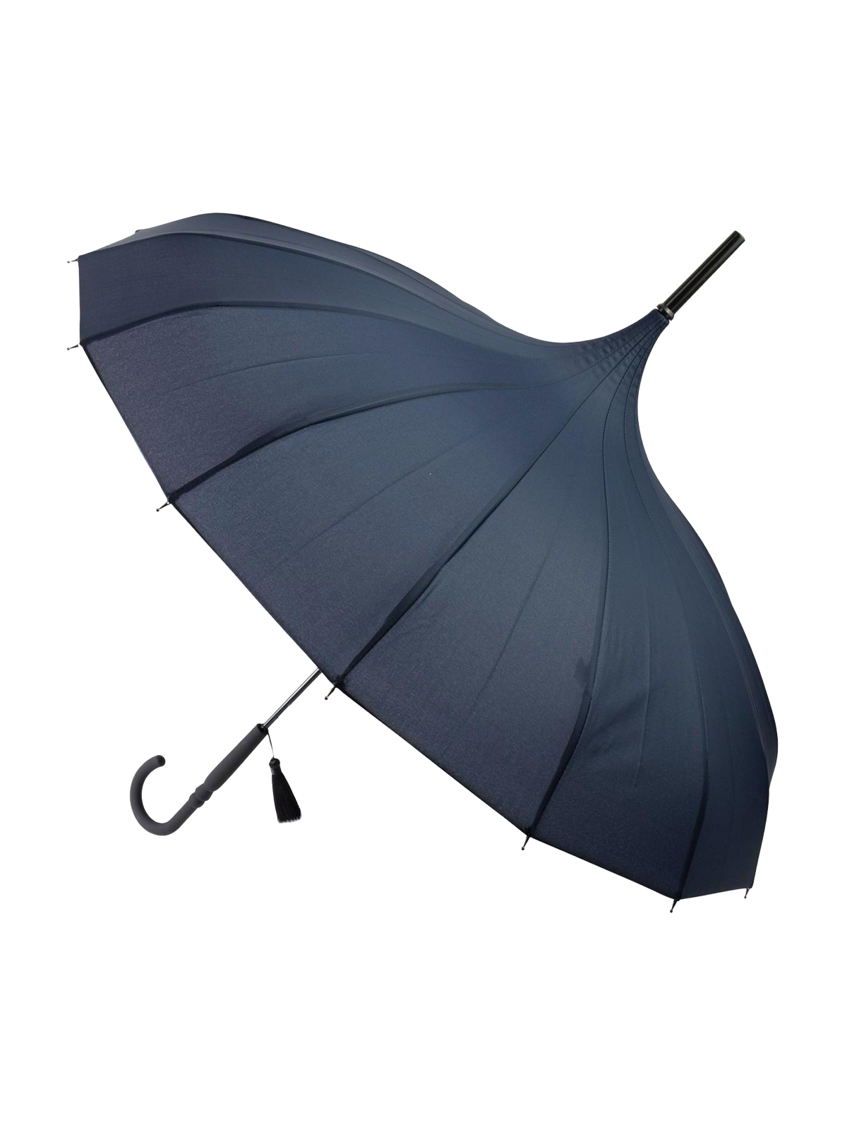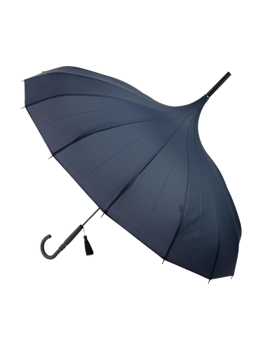 Classic retro look pagoda umbrella in a timeless navy shade. Protect your vintage outfits in inclement weather with a perfectly complementary accessory.