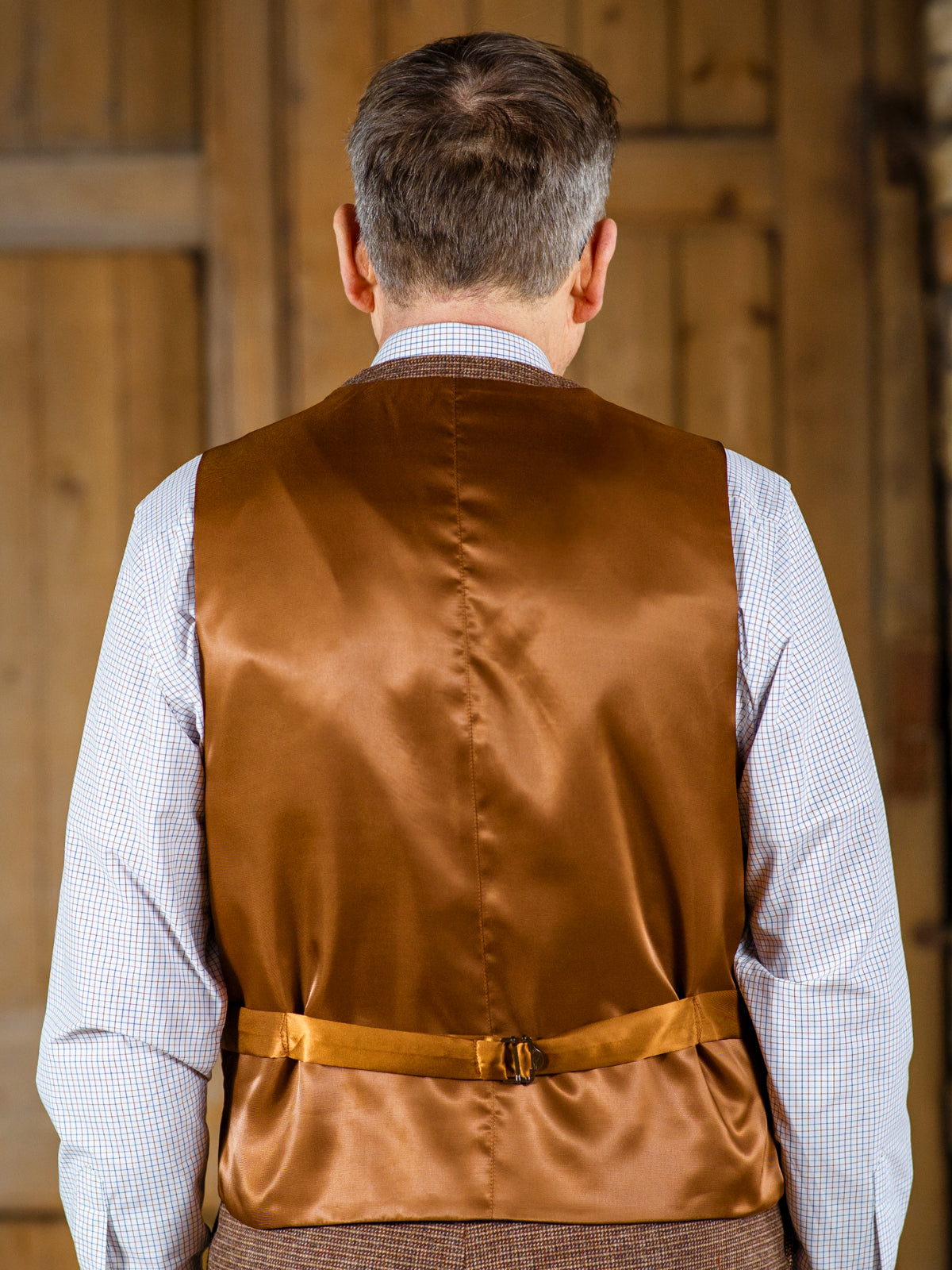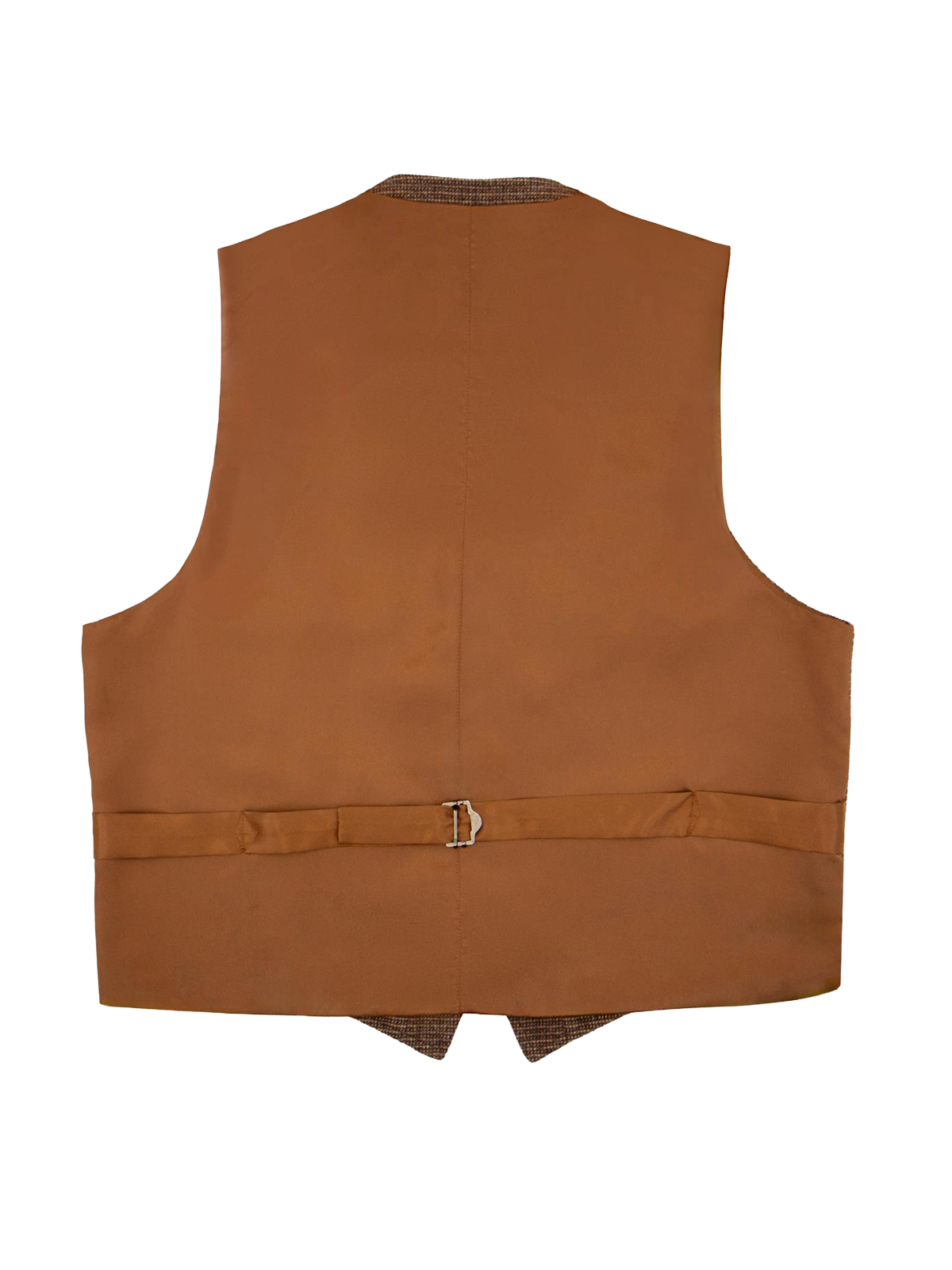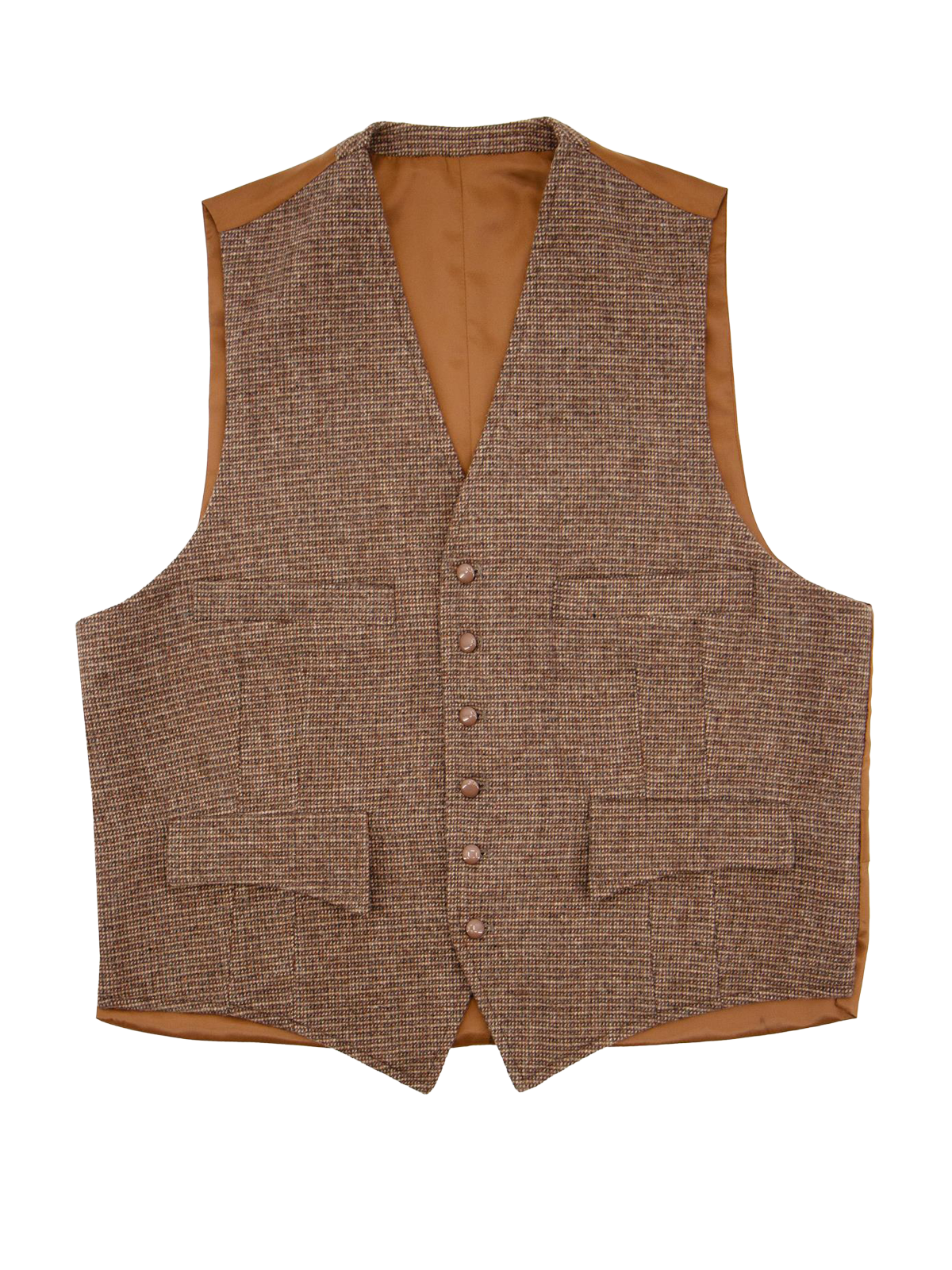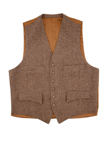 The Countryman Waistcoat is an authentic reproduction inspired by original 1930s–1940s vintage waistcoats from our archive. Tailored in a wool-rich brown herringbone check, it offers true heritage style with refined detailing and timeless rural charm.