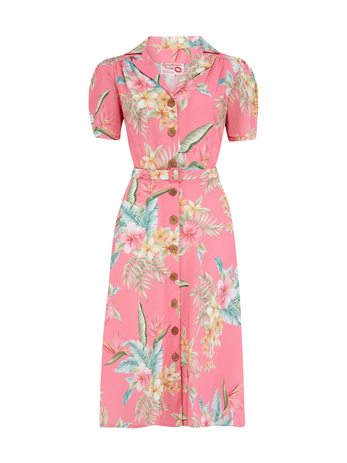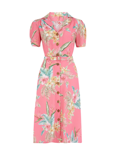 1950s Style Honolulu Print Shirtwaister Dress - Pink