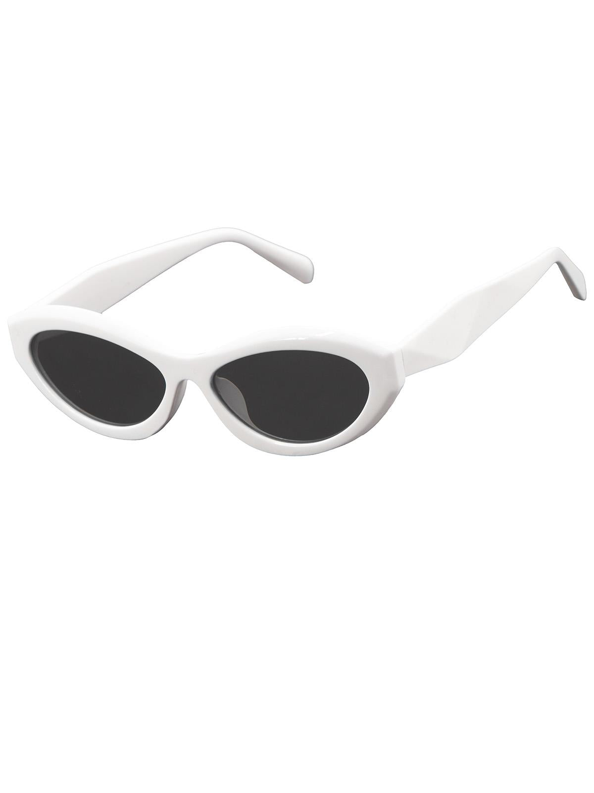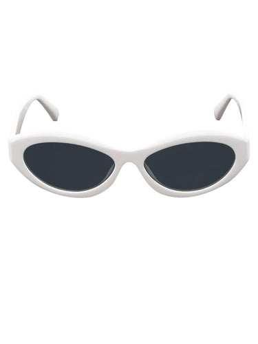 Vintage style rounded catseye sunglasses with a classic white frame. A luxurious style, perfect for your vintage inspired outfits.