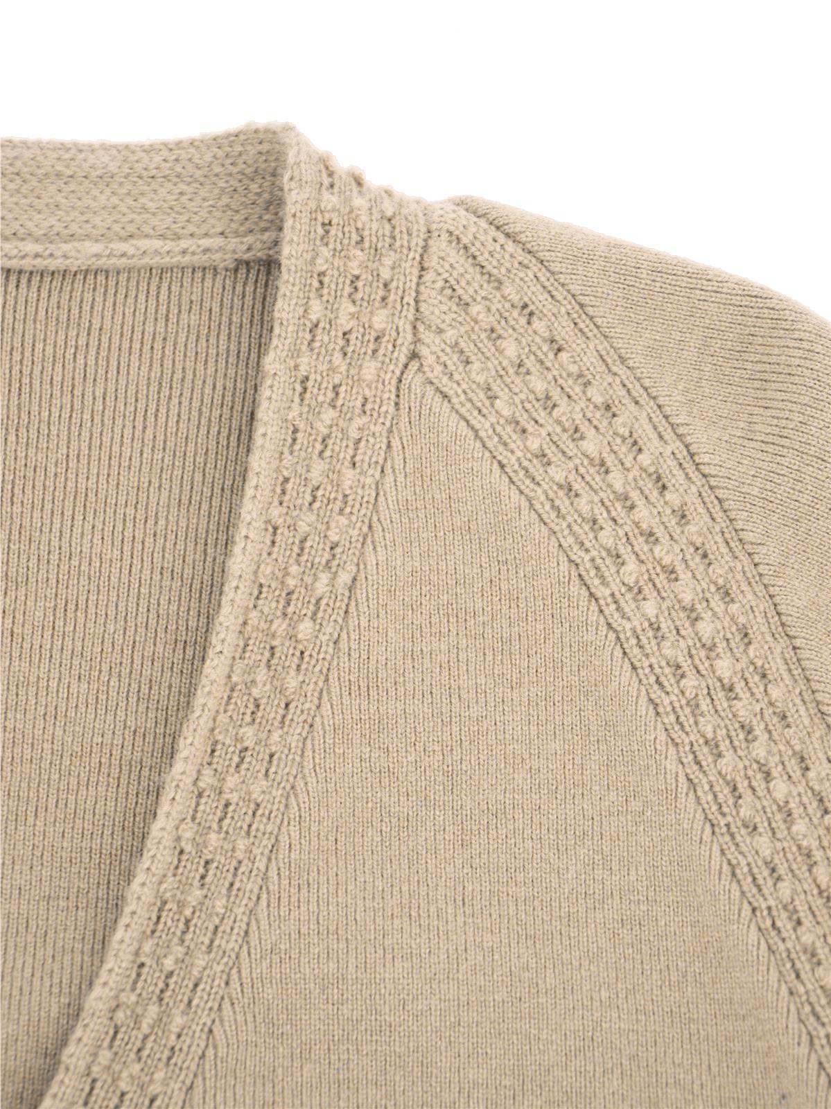 This cropped cardigan takes its pattern from an original 50s piece in our archive, replicating the textured ribbing around the neck and shoulders. It's fastened with six pearlised buttons and has a relaxed fit, with raglan sleeves and a stretchy ribbed waistband.