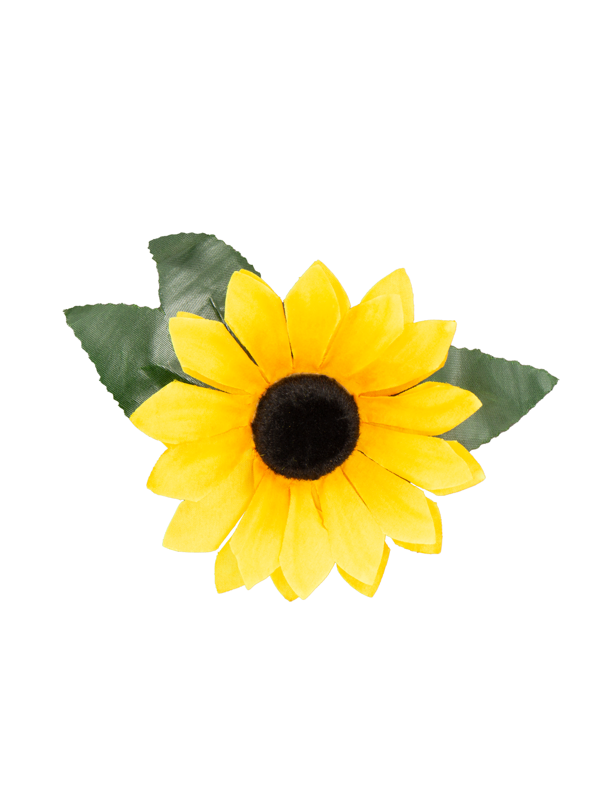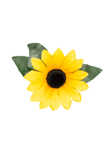 A happy yellow sunflower against contrasting dark green leaves makes for simplicity and style in this meadow-inspired offering. Set on a crocodile hair clip for easy pinning so you can slide-and-go. Try pinning to a hat, headscarf, bag clasp, or scarf knot to accessorise in floral style.