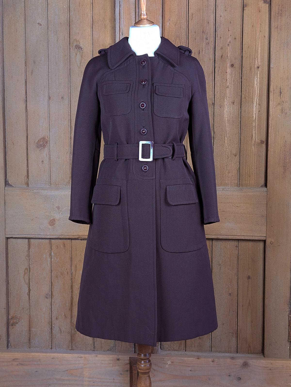 1960s Vintage Aubergine Belted 4 Pocket Coat