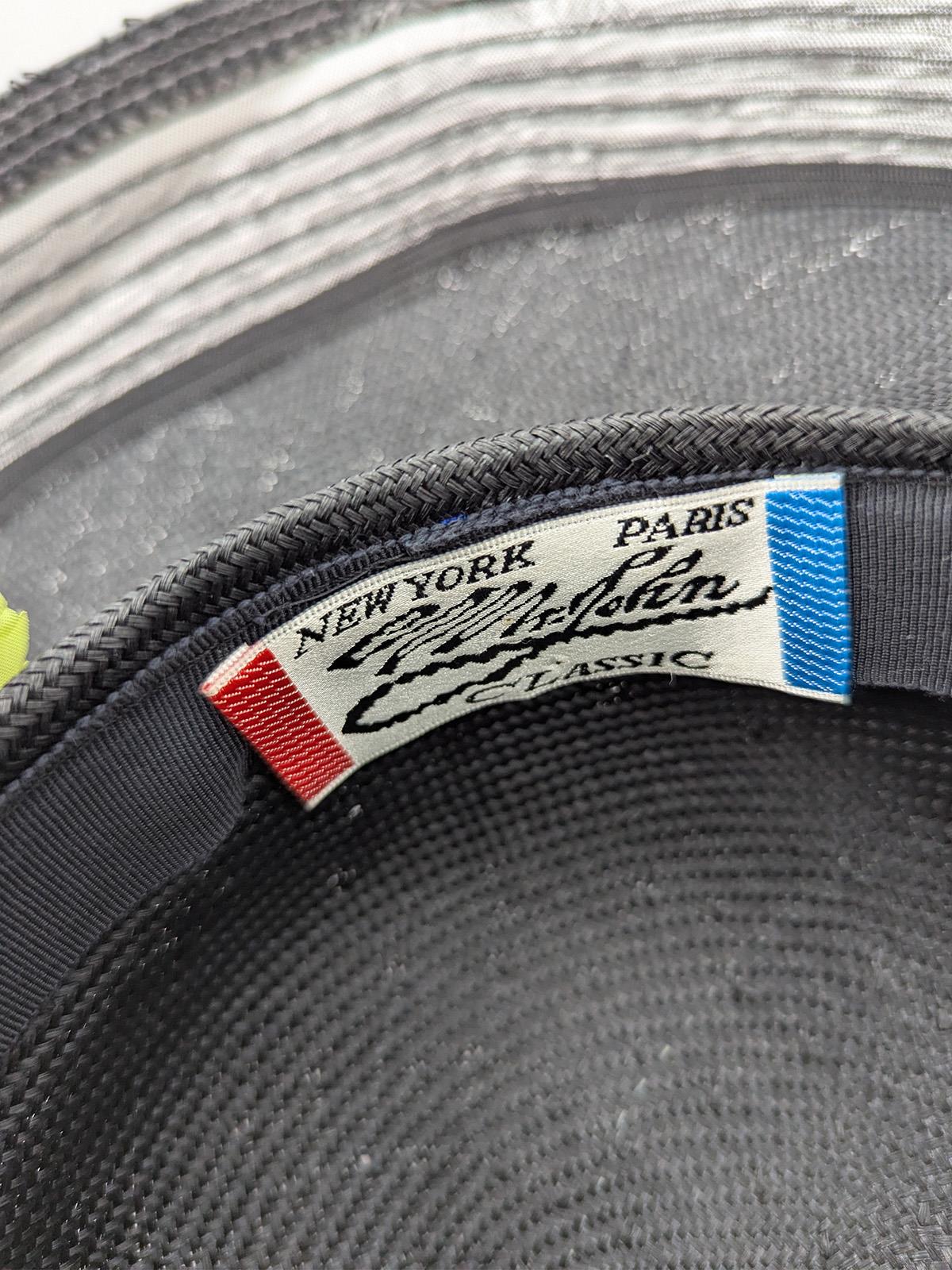 A fabulous vintage black hat from the 1970s / 80s, styled with the elegance of the 1940s era. It features a round crown with black and green floral detailing underneath and around the brim. Labelled WA John, New York & Paris.