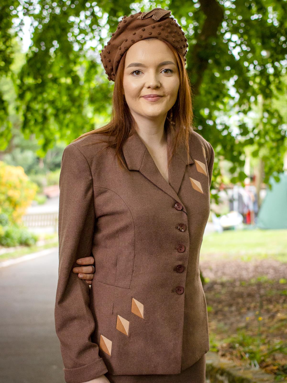 This Majestic suit from our exclusive Socialite label was named to pay homage to our beloved Queen Elizabeth II, who died during the design and development of this suit. This latest colourway in quail brown will make you feel like royalty and is perfect for any patriotic vintage fairs and festivals or a smart afternoon tea with the girls.