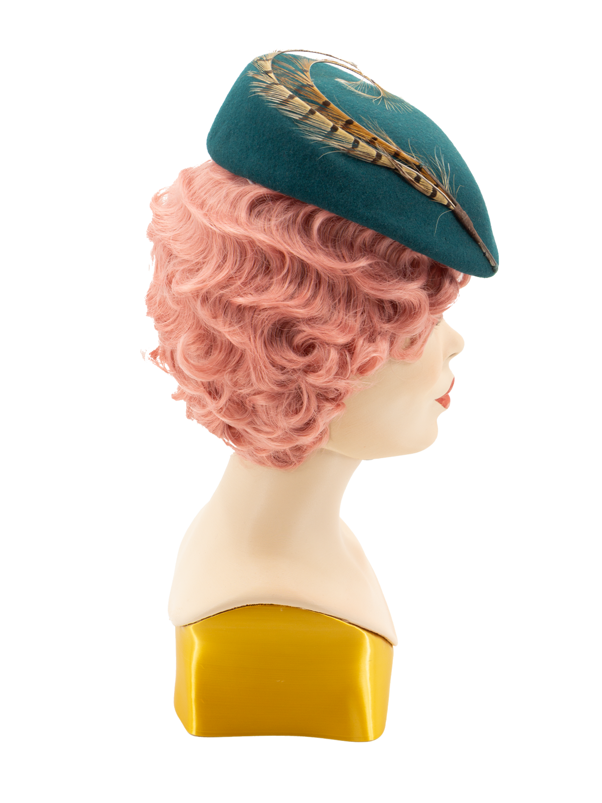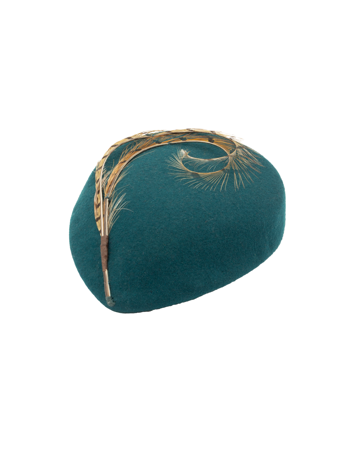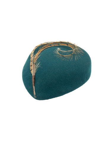 Hand Fashioned Teardrop Hat With Feather Swirl- Teal