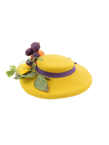Handmade Mini Tilt Hat Decorated With Fruits - Mustard