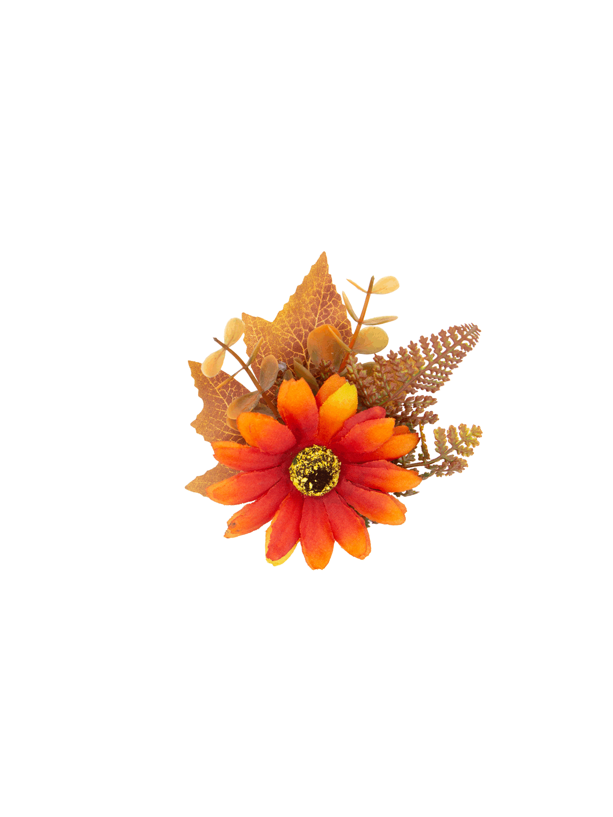 This Revival exclusive is a seasonal edition of our favourite Sunset Fern, bringing warmth within its petals. Featuring a vibrant orange and red daisy nestled amongst autumnal ferns and leaves. Set on a crocodile hair clip for easy pinning.