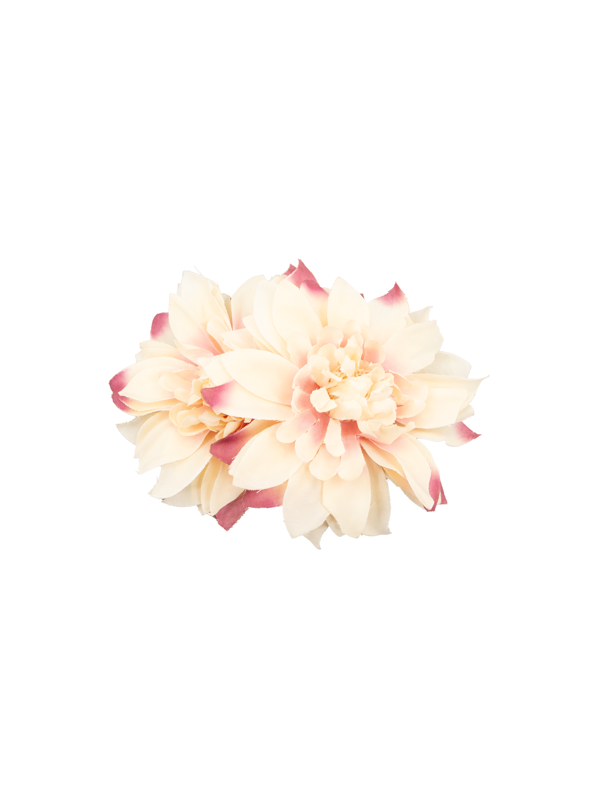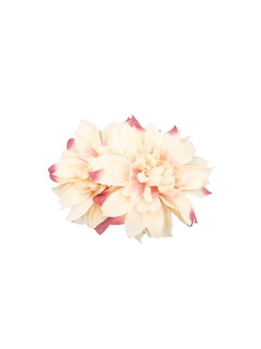 Add a touch of timeless romance to your look with our double dusky pink dahlia hair accessory, featuring two life like dahlias, with tonal pink edging detail. This piece is perfect for adding a touch of pin up glamour to any outfit.