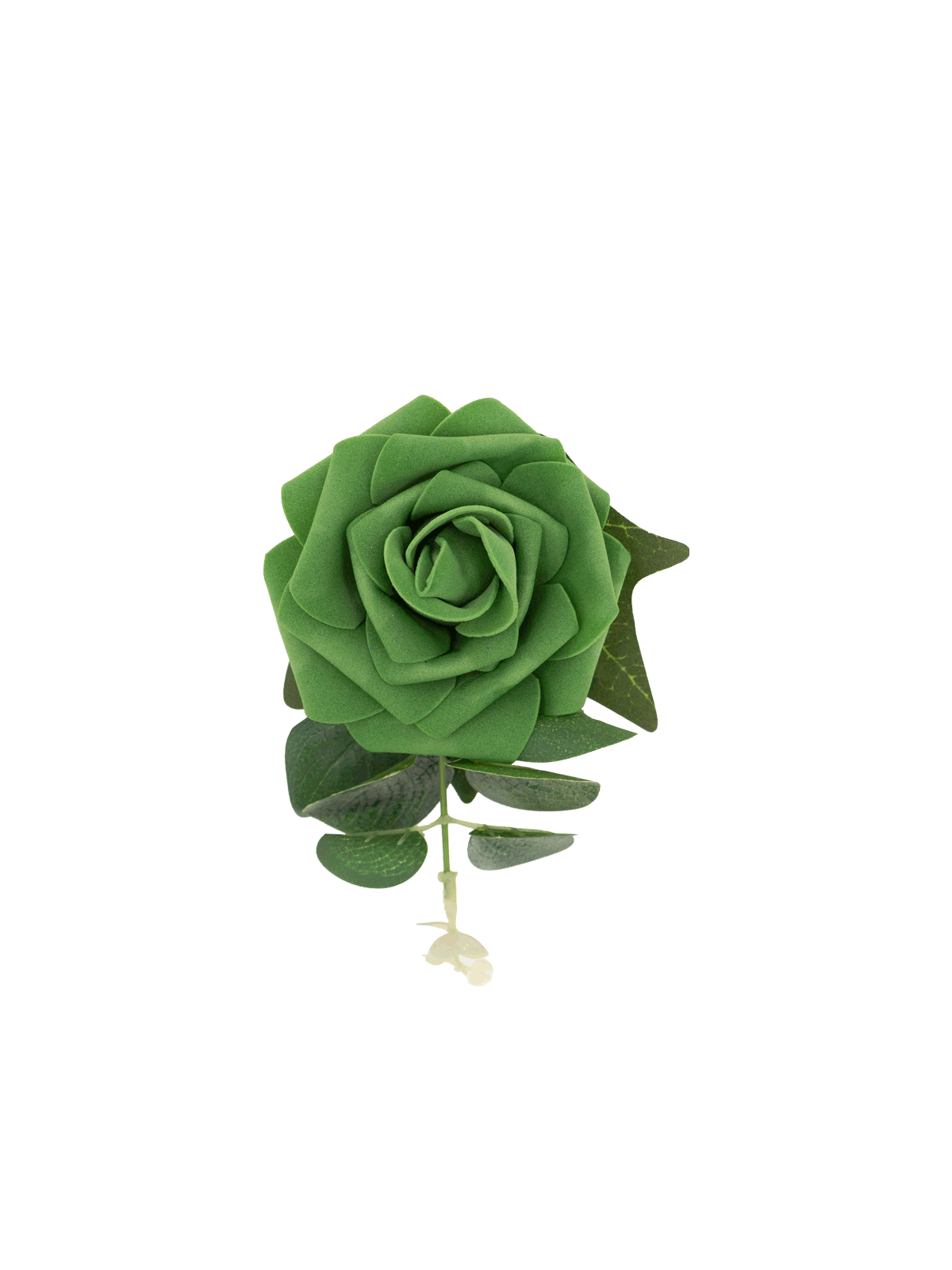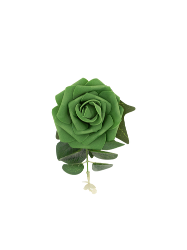 This charming Revival exclusive, the Green Rose hair clip, features a single, beautifully formed green rose set against dark ivy leaves and a delicate eucalyptus sprig. This accessory offers a unique and elegant twist on traditional floral hair pieces. Set on a crocodile hair clip for easy pinning.