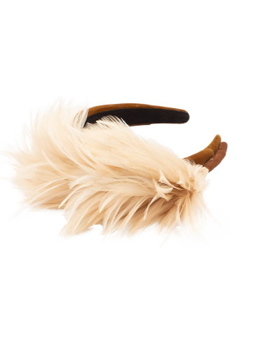 Hand Fashioned Headband Beige Feather Plume - Brown