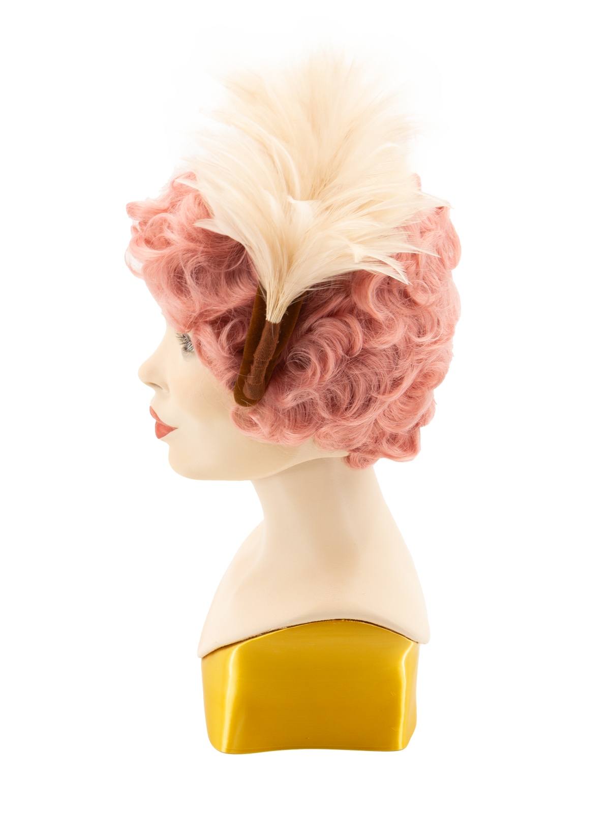 Plush brown velvet with pale blush, and beige tonal feathers.