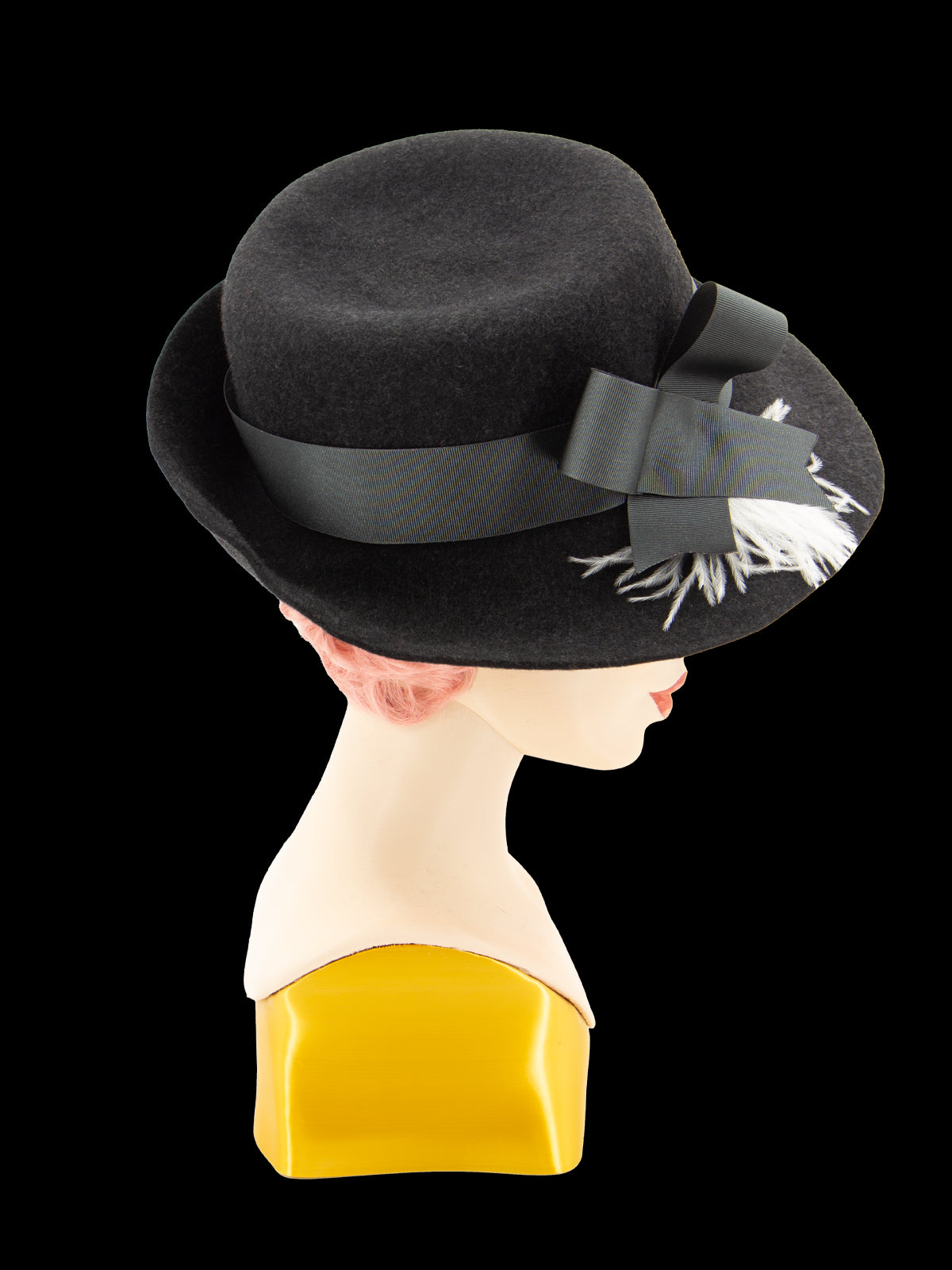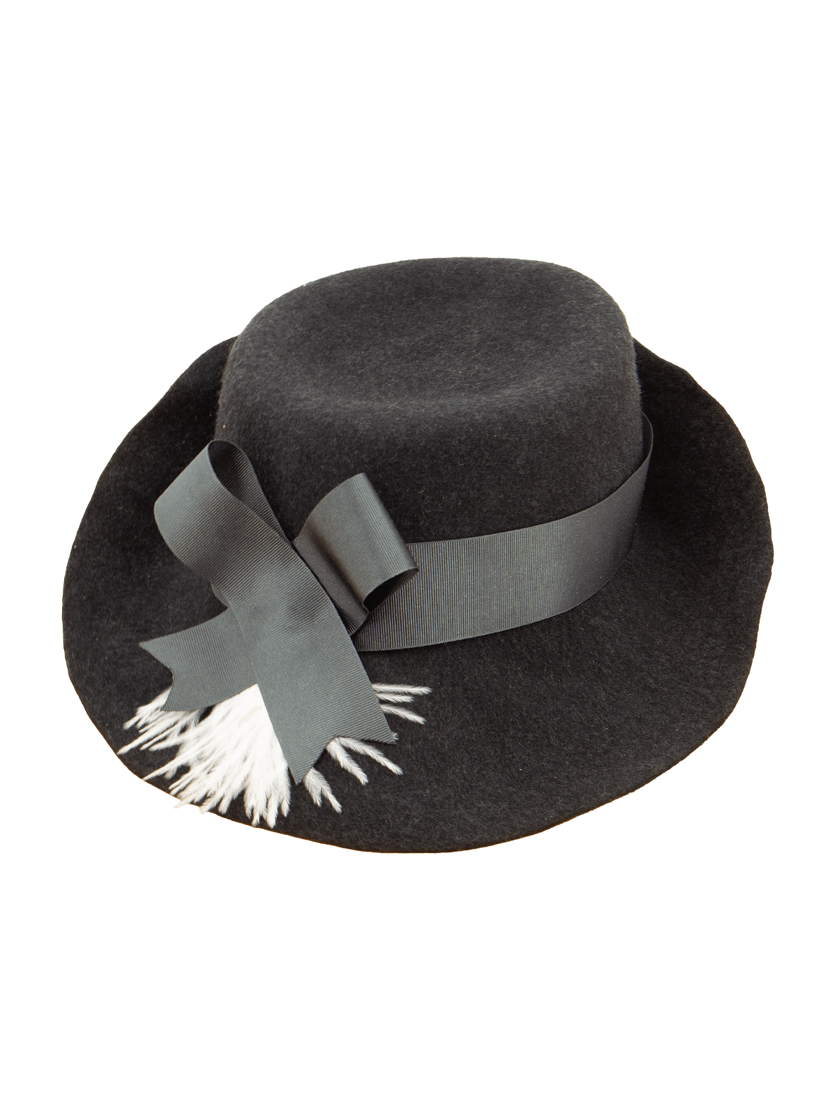 Handmade 1940s Style Bow Trilby - Charcoal Grey