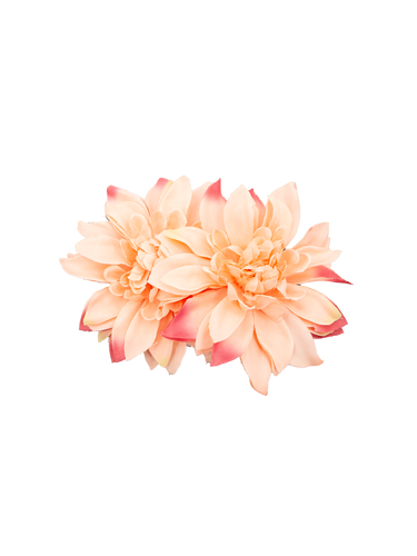 Add a touch of timeless romance to your look with our double peach dahlia hair accessory, featuring two life like dahlias. This piece is perfect for adding a touch of pin up glamour to any outfit.