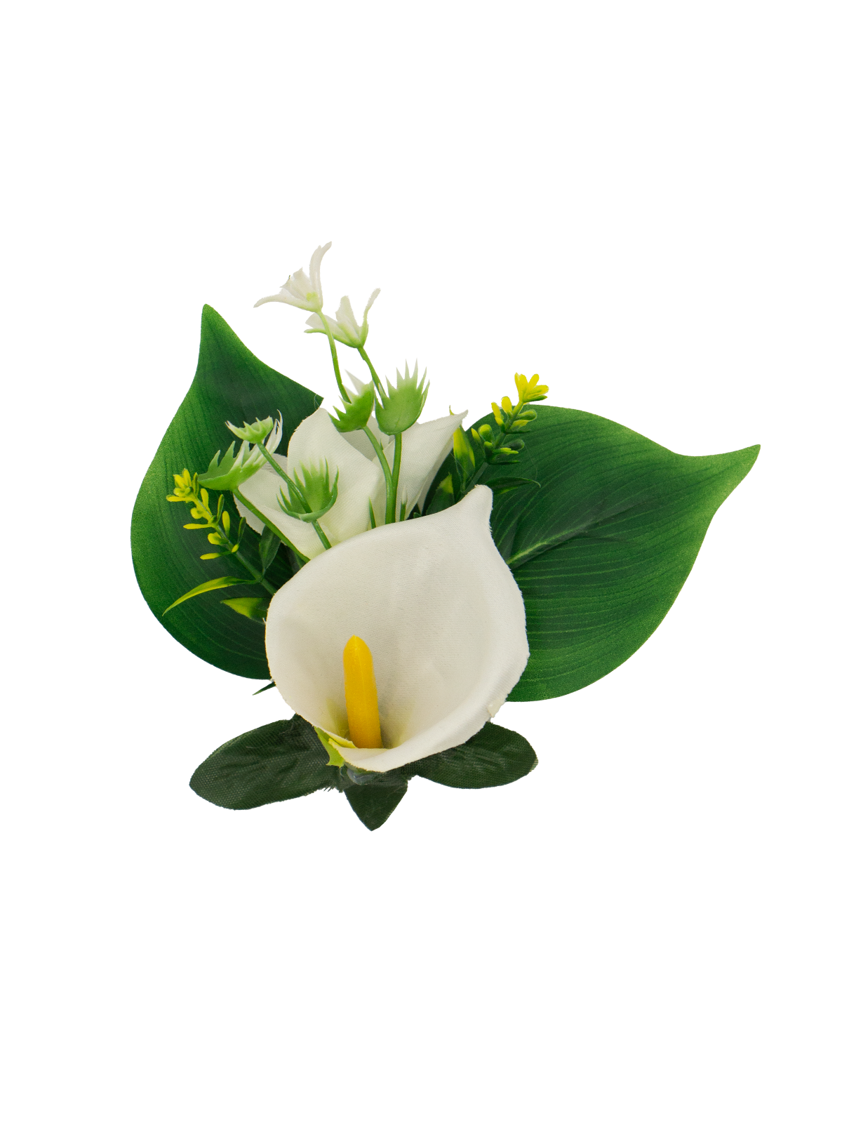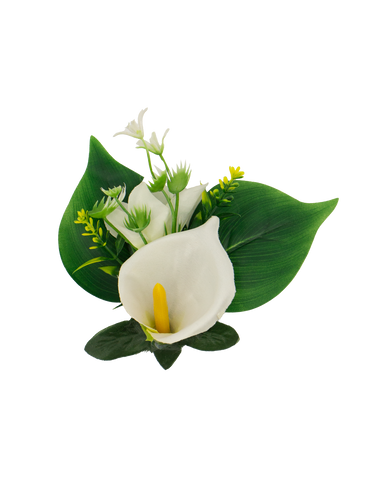 Fashionable elegance from far-flung lands with this simple spray of a white Peace Lily against rich green leaves. Set on a crocodile hair clip for easy pinning so you can slide-and-go. Try pinning to a hat, headscarf, bag clasp, or scarf knot to accessorise in floral style.