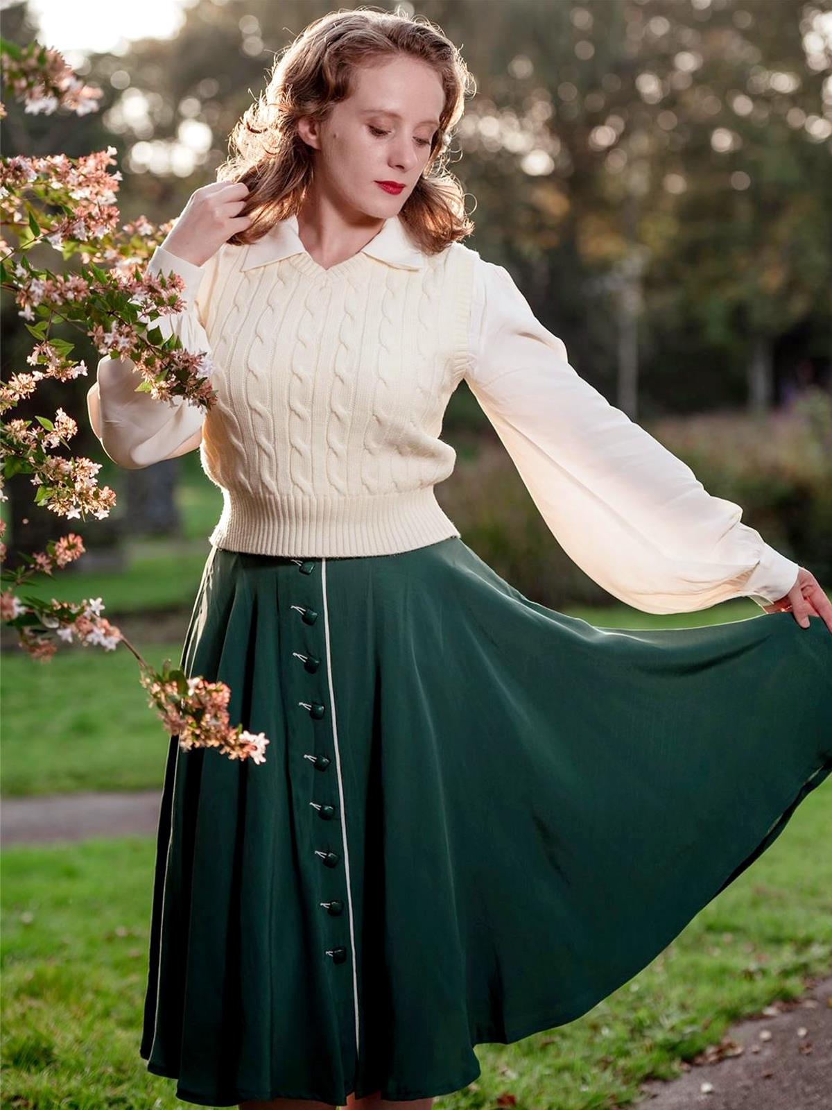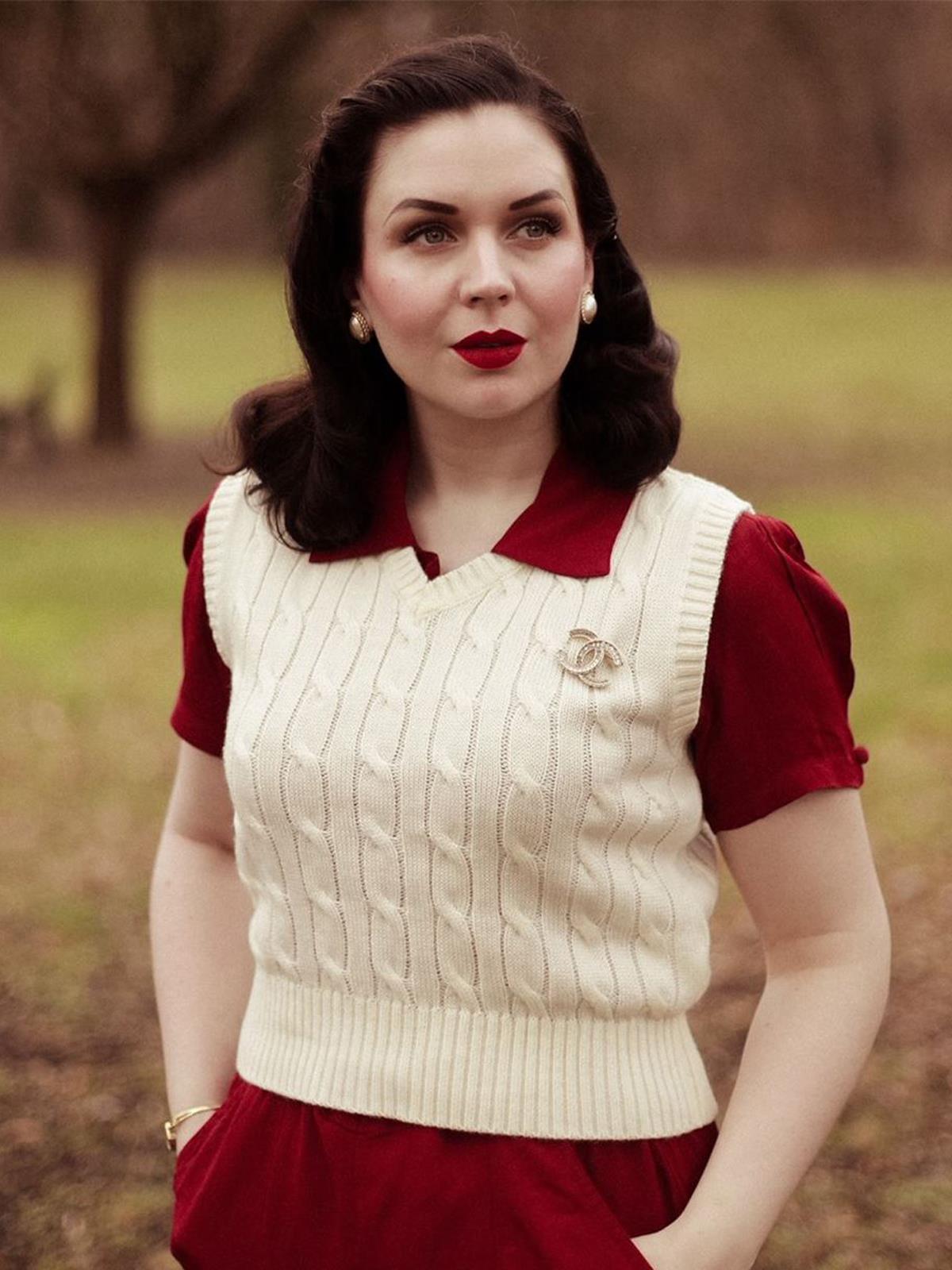 This cable knit tank top vest has a great vintage 1940s - 1950s look. Knitted in replica 'Orlon' which was developed originally by Du Pont in 1941 as a substitute for wool, and is free of any animal products.
