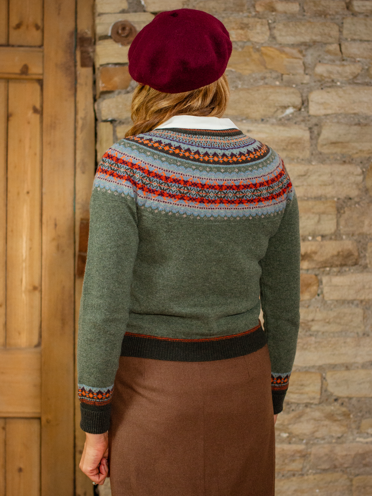 Hand produced in Scotland using quality, natural yarns spun by ERIBÉ, an established knitwear design house and manufacturer that has been in operation for 33 years. Each piece is made using knowledge handed down from one generation to the next to create a sustainable product which looks and feels great while lasting for years to come. ERIBÉ work with over 136 artisan knitters throughout Scotland and England to produce the beautiful hand knit range of Fairisle pieces, which we stock at Revival Vintage for their fabulous wartime aesthetic that makes them so perfect for a retro enthusiast.