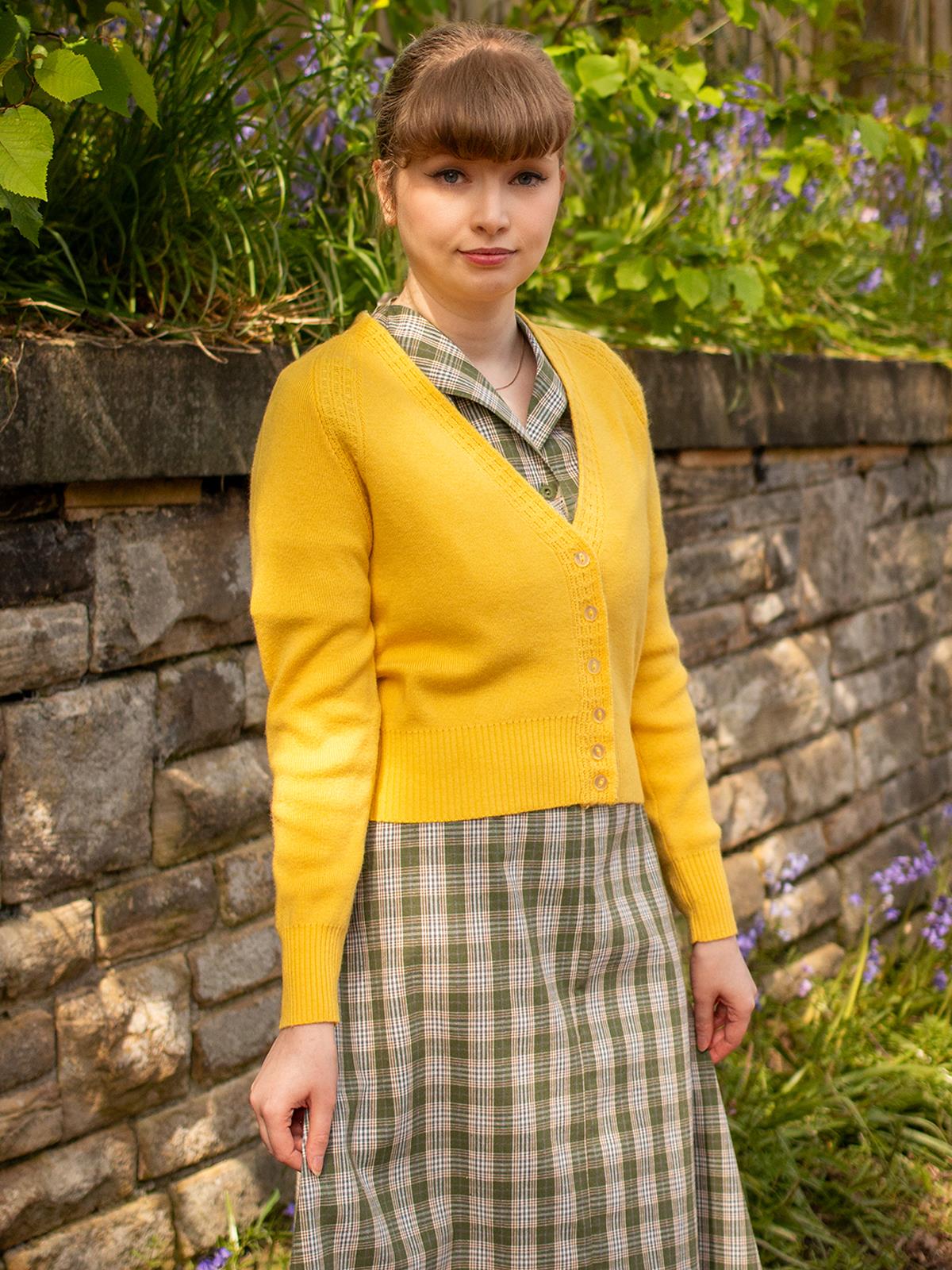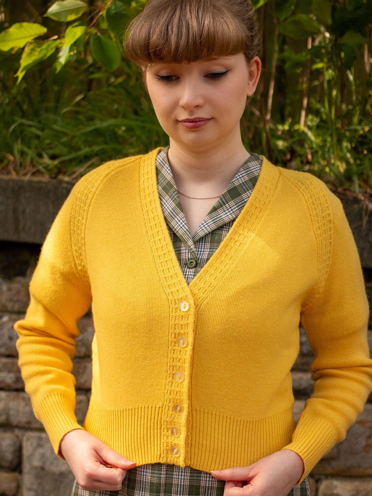 The Daydream cardigan's shorter length makes it a perfect match for vintage dresses or high-waisted jeans, effortlessly complementing any 1940s or 50s-inspired attire, whether formal or casual.