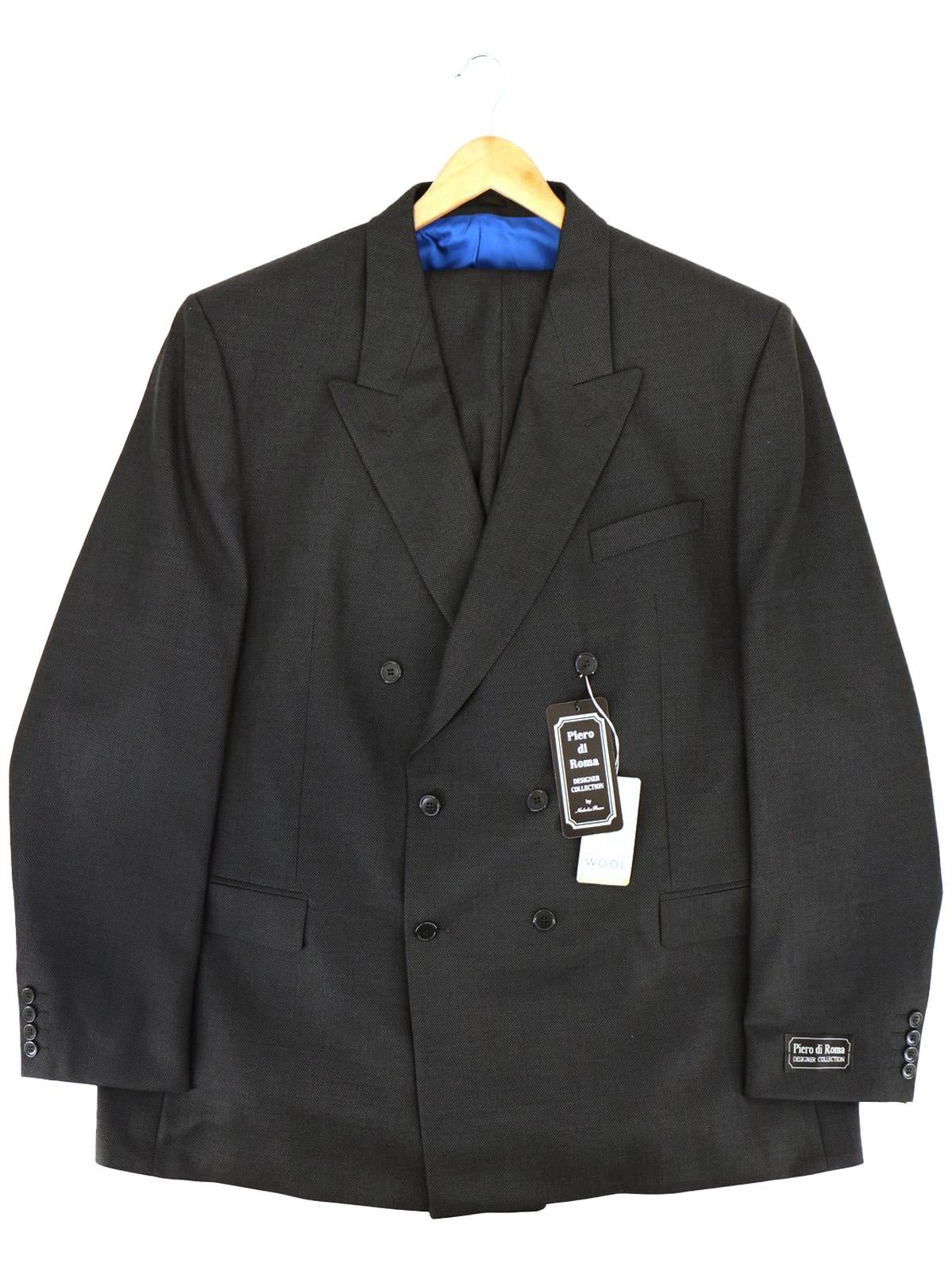Nineties deadstock suit replicating that 1940s demob style in a dark grey and black birdseye pattern.