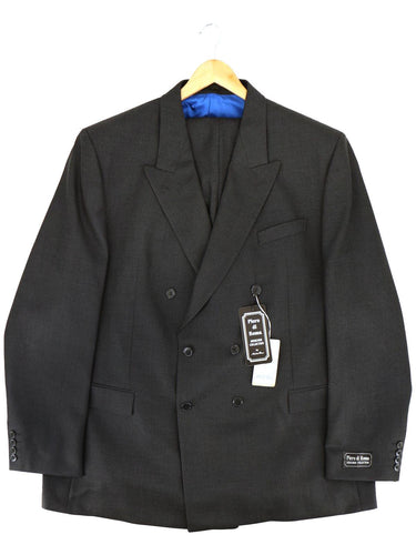 The 1940s look double-breasted jacket has broad peak lapels with double back vents.