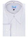 This addition to our "grandad" shirt family features an exclusive blue and pink stripe. The shirt has buttonholes & a stud to allow for attaching one of our detachable collars if desired for a formal look, or wear without for a laid-back style. The stripe evokes the 1930s & 1940s period perfectly and will be a versatile staple for your vintage wardrobe.