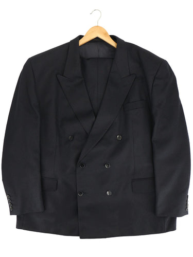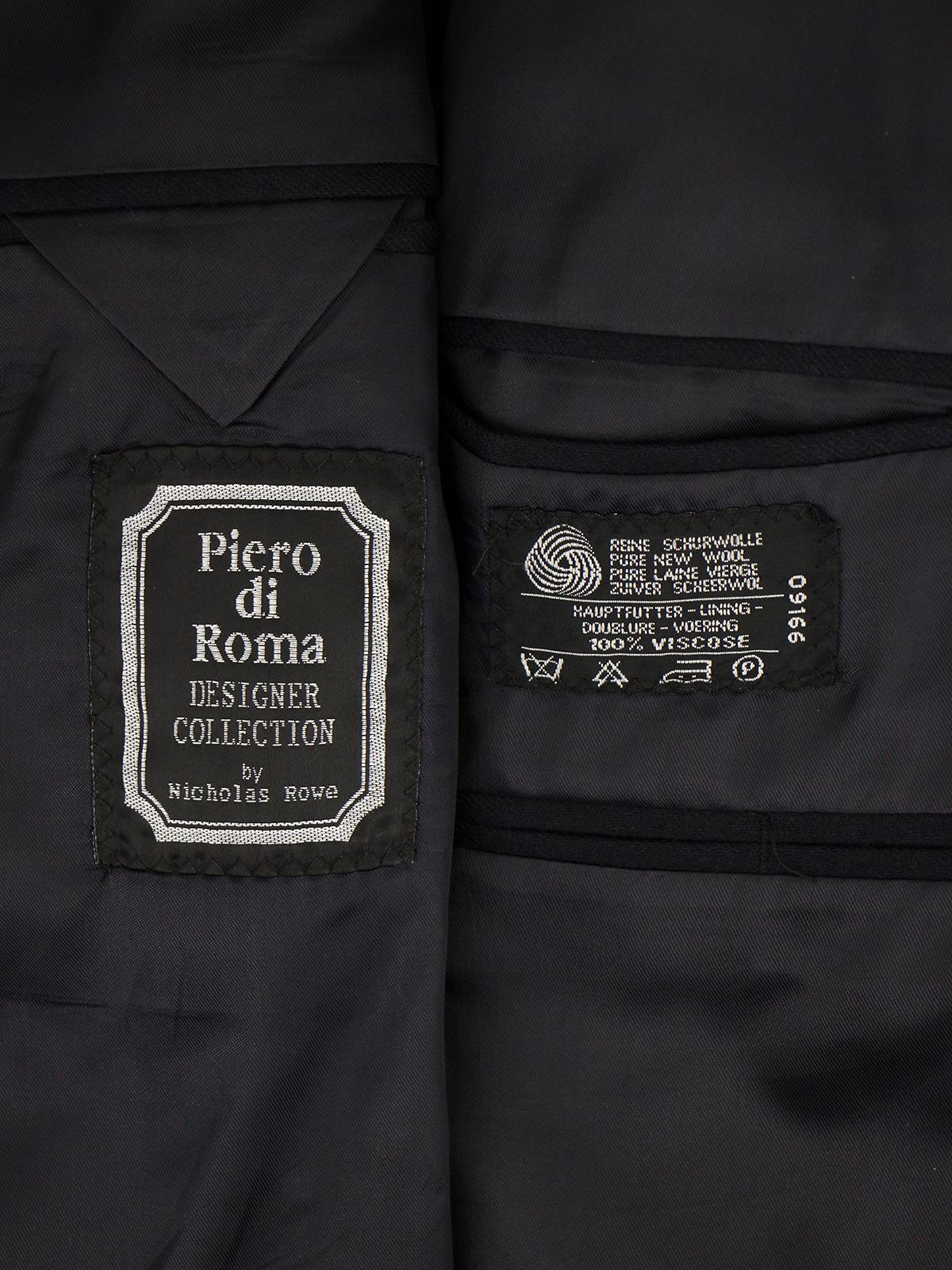 This original nineties vintage deadstock suit is realised in navy suiting cloth, tailored by Nicholas Rowe for Piero de Roma.