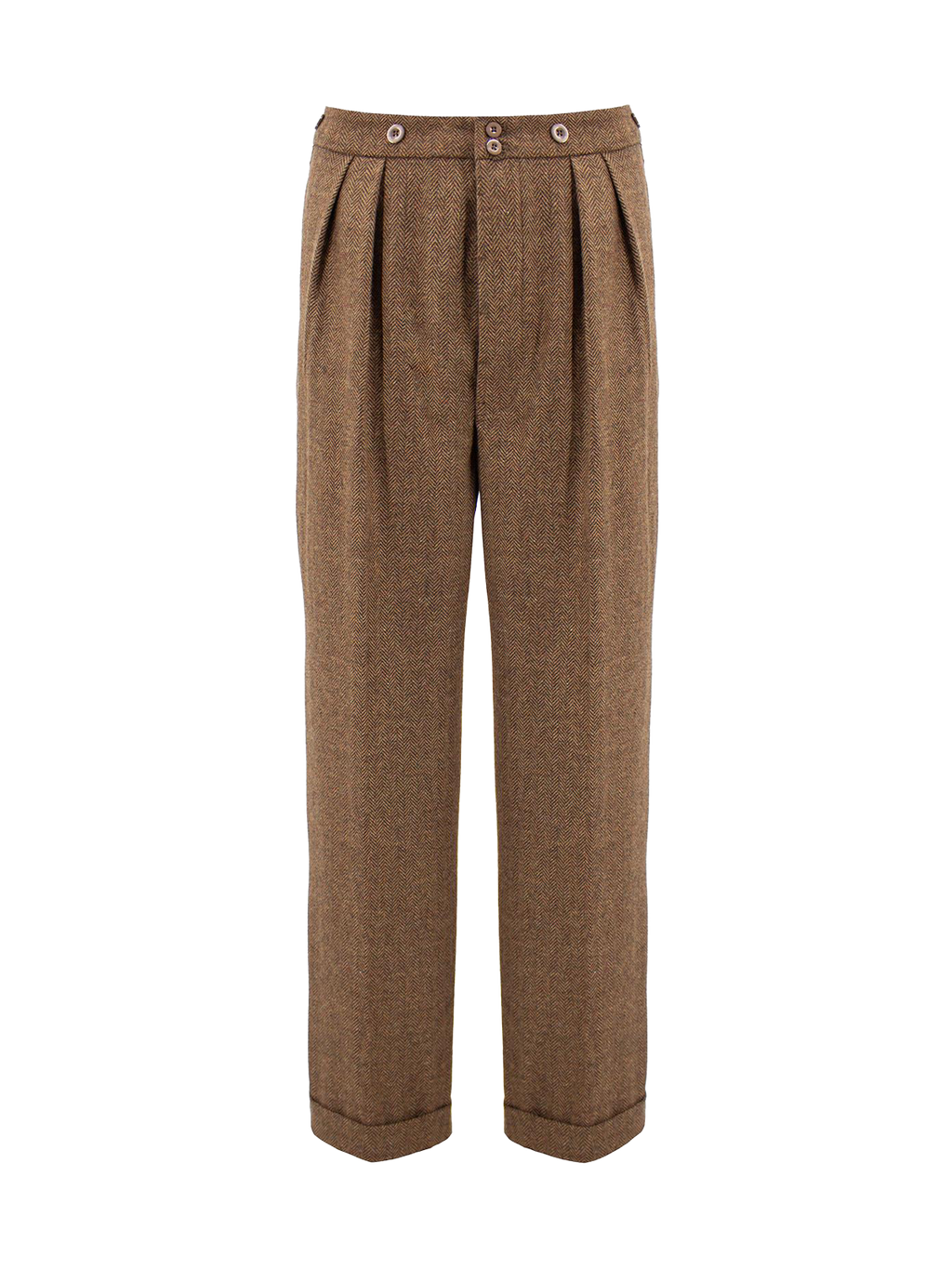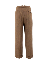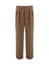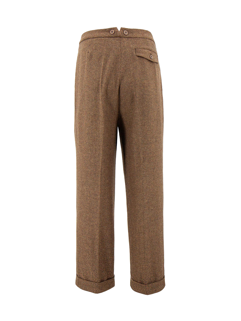 1940s Granville Herringbone Wool Bag Trousers - Cedar Brown