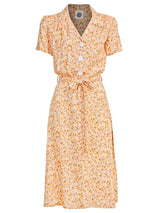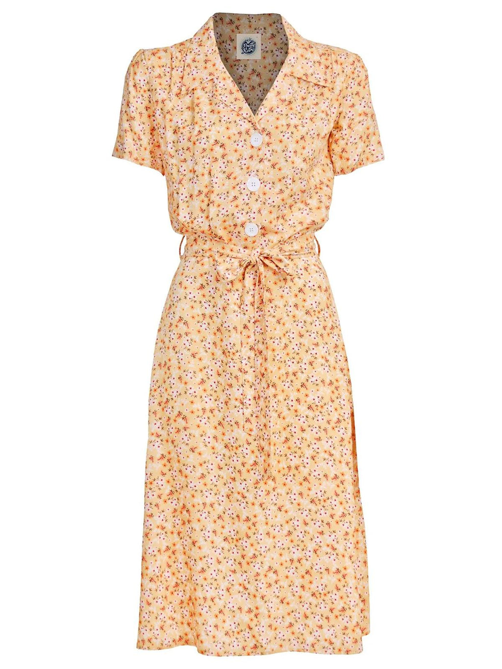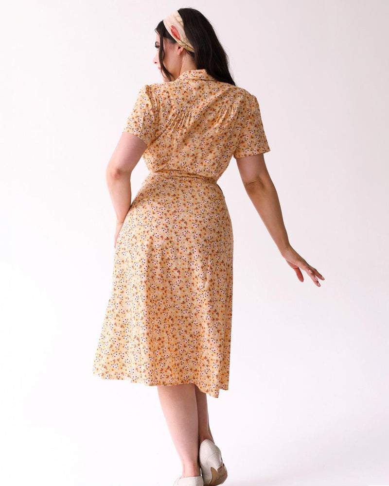 1940s Inspired Yellow Ditsy Floral Shirt Dress