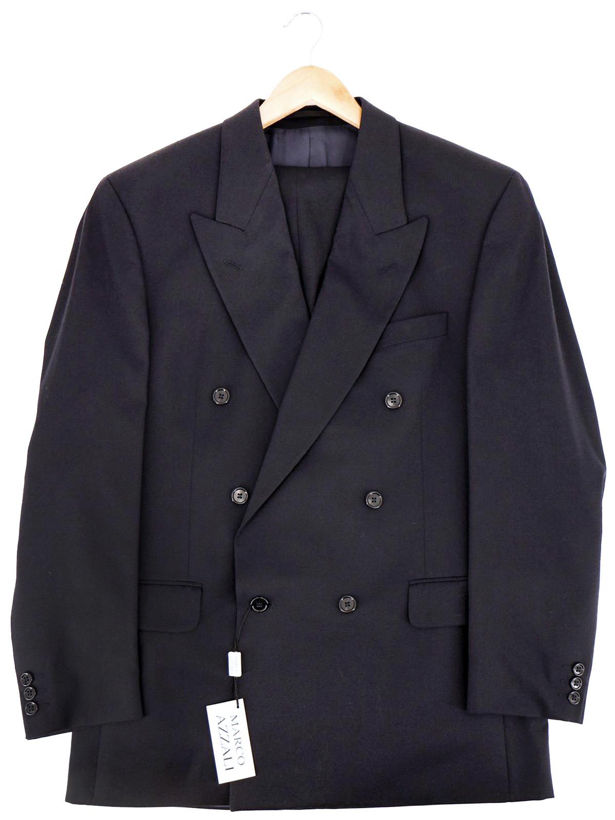 This original nineties vintage deadstock suit is realised in navy wool blend suiting cloth, tailored by Marco Azzali.