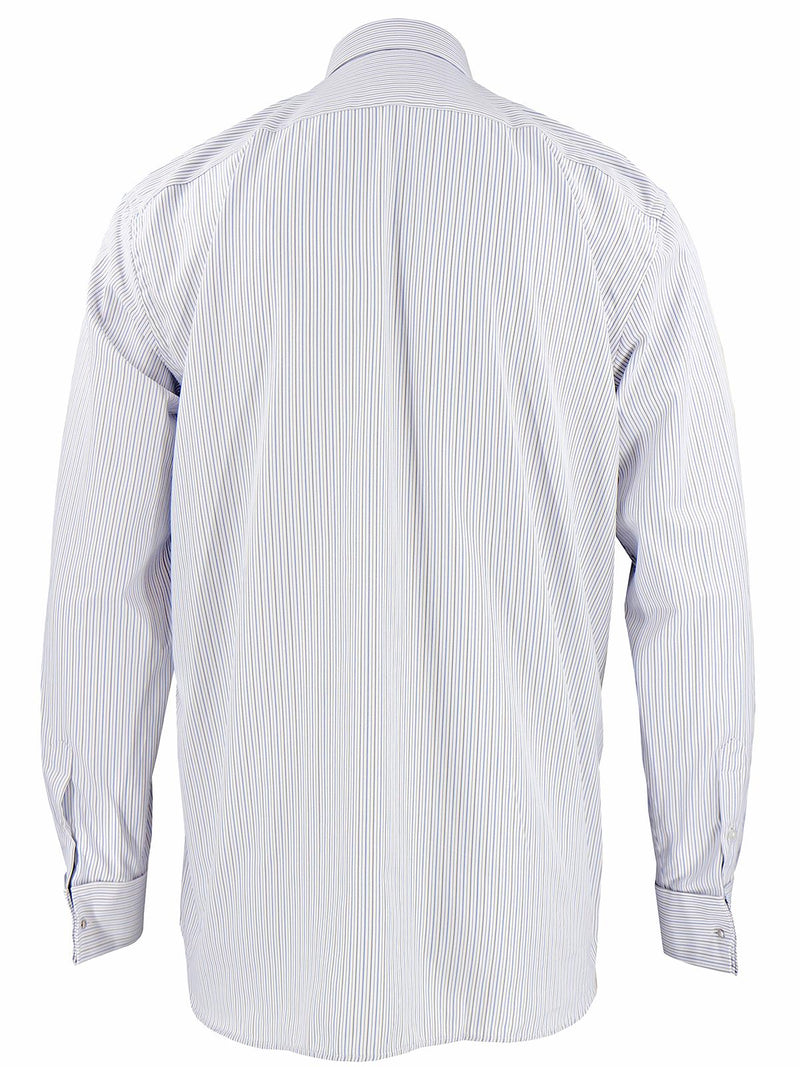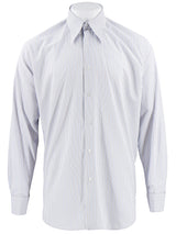 This forties vintage style cotton shirt with a spearpoint collar and alternating grey and blue stripes. The style of our shirts is copied exactly from an original. A classic menswear style and quality.