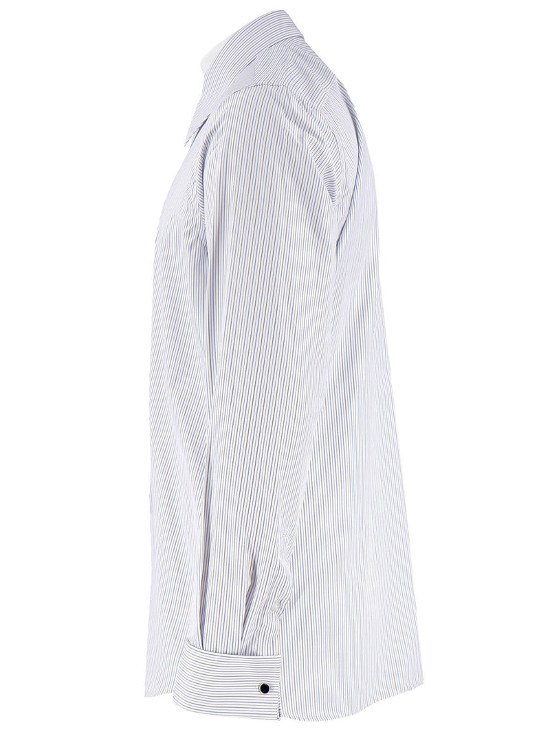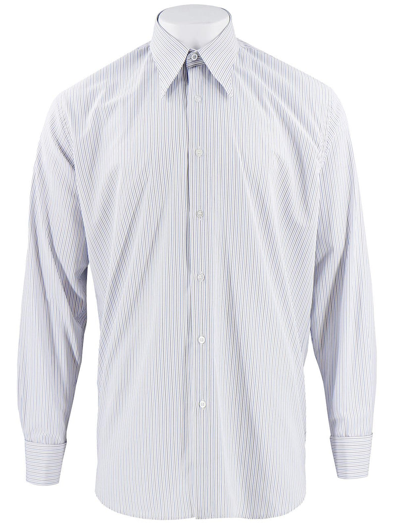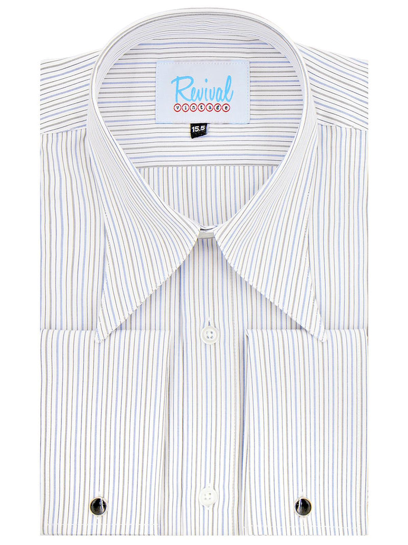 1940s Style Spearpoint Collar Shirt With French Cuff - Grey & Blue Windsor Stripe