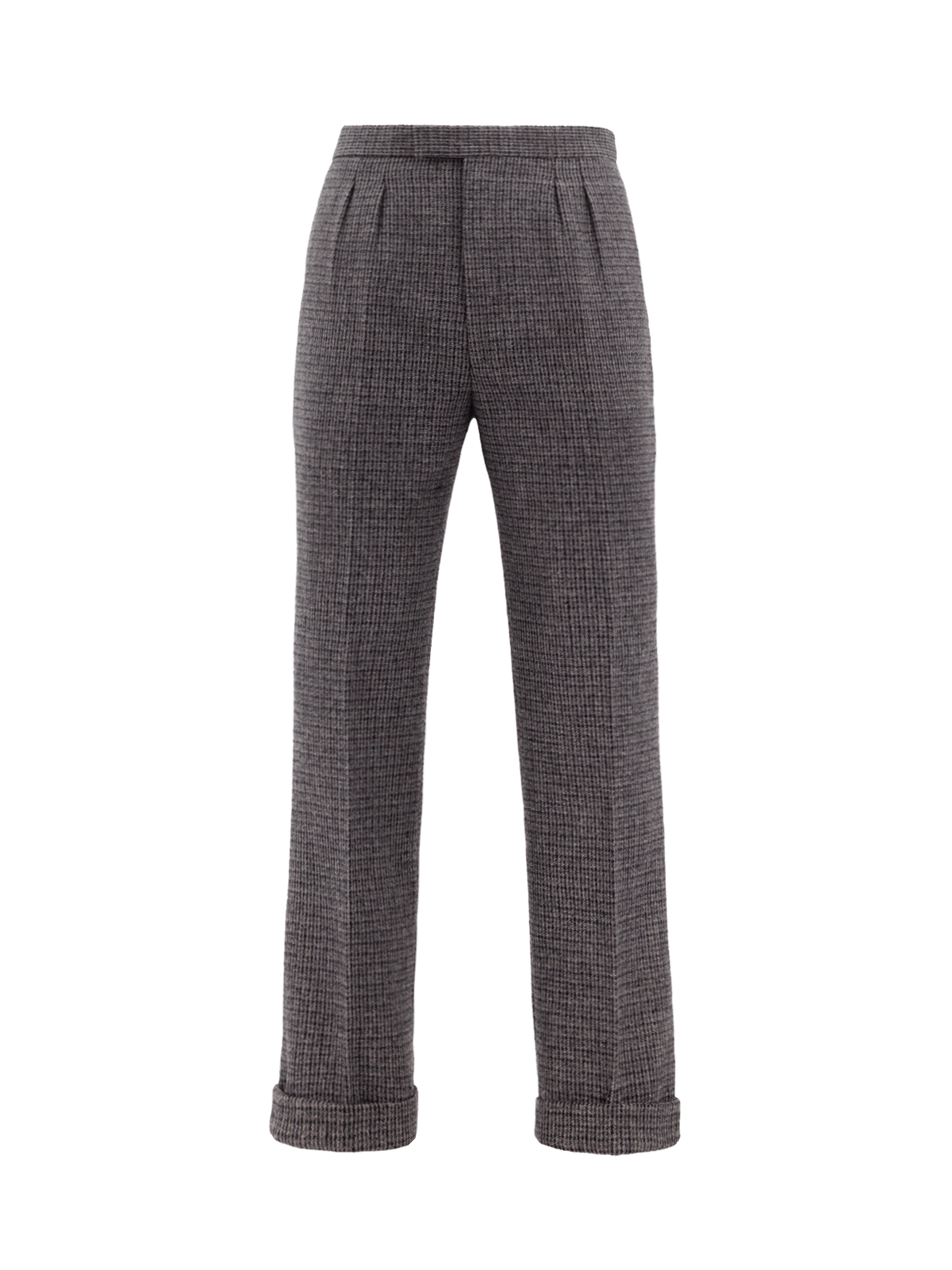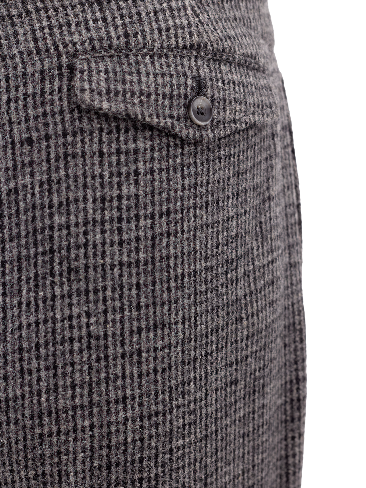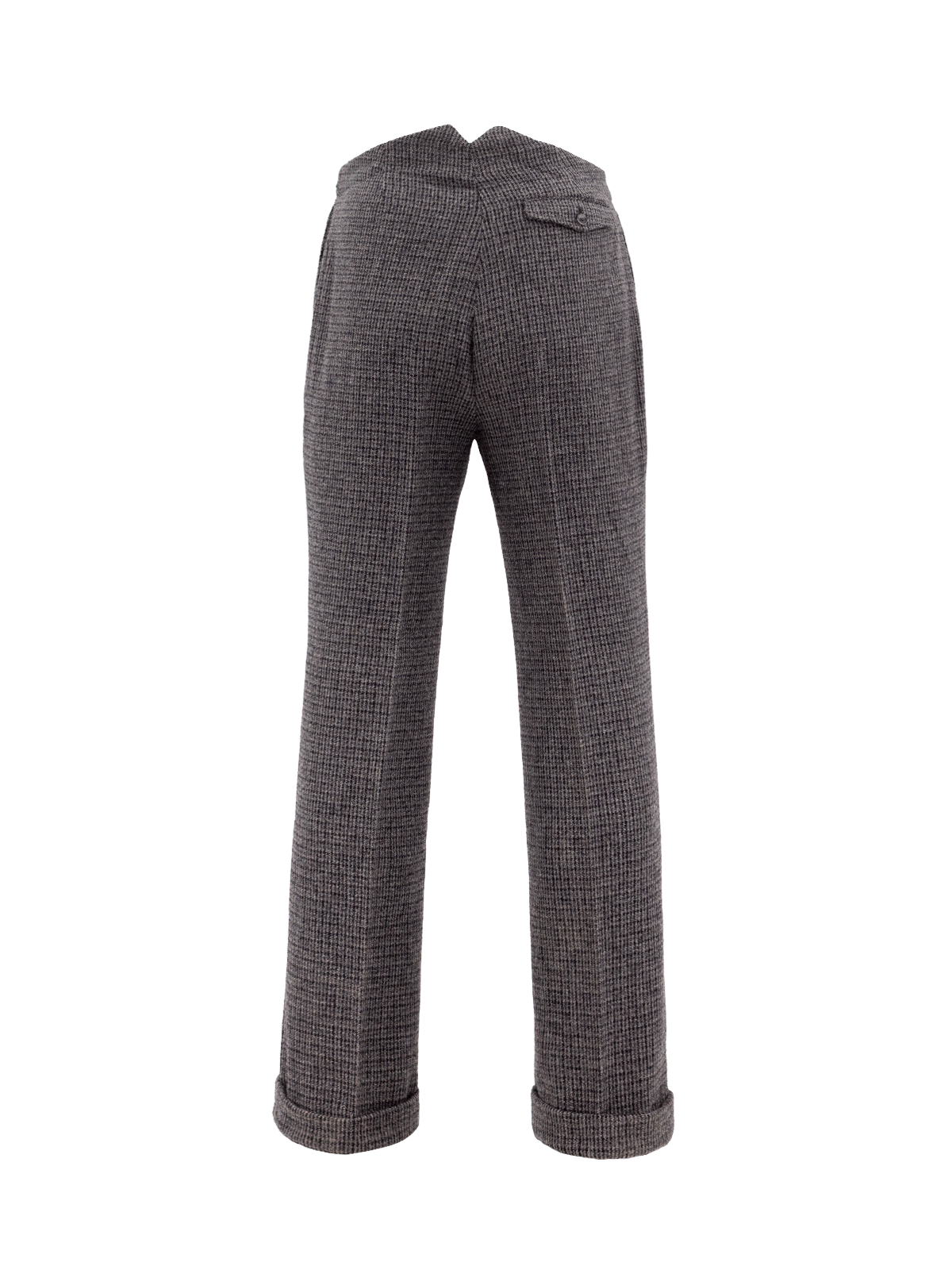 Clubman Foundry Grey high waist trousers, in a multi-shade grey houndstooth tweed with fishtail back detail. You can rely on our Socialite range to be an accurate replica an original pair of 1940s men's trousers.