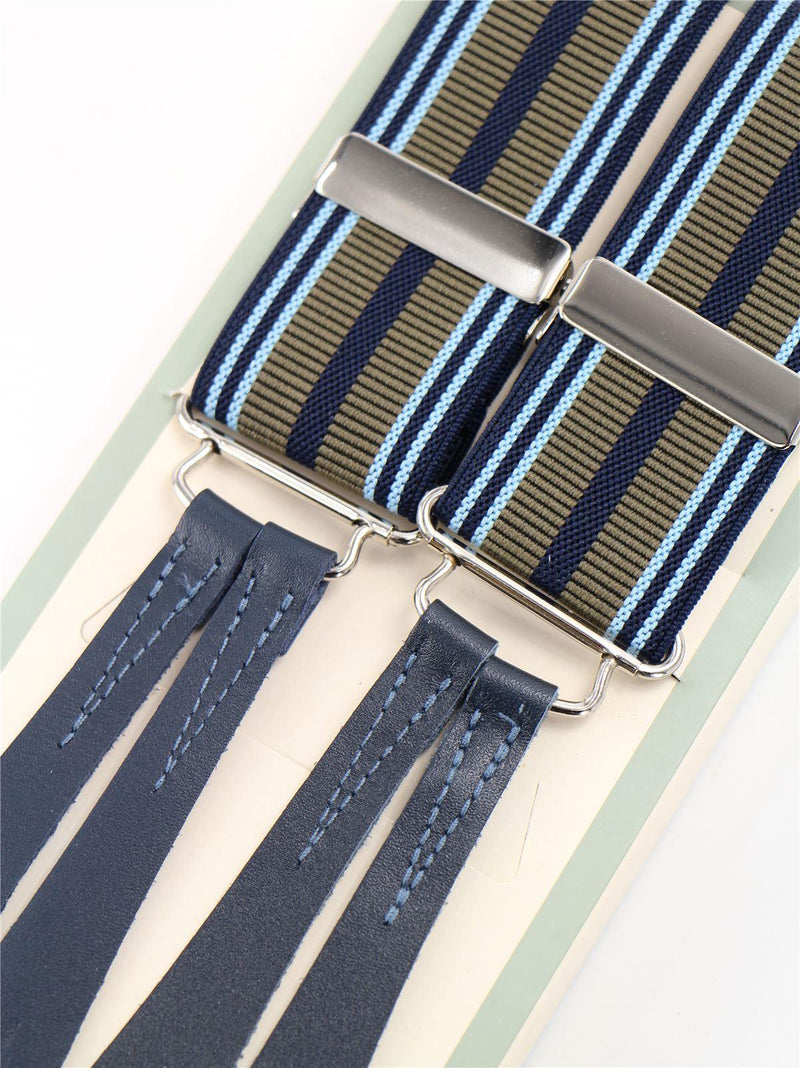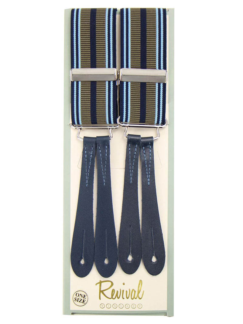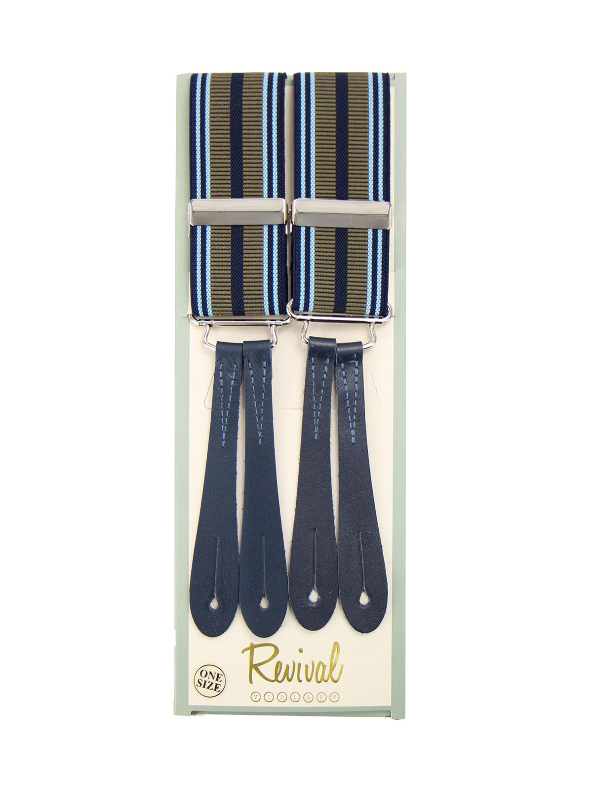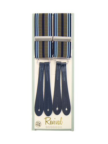 Khaki & Blue Stripe Button Braces with Blue Leather Loops