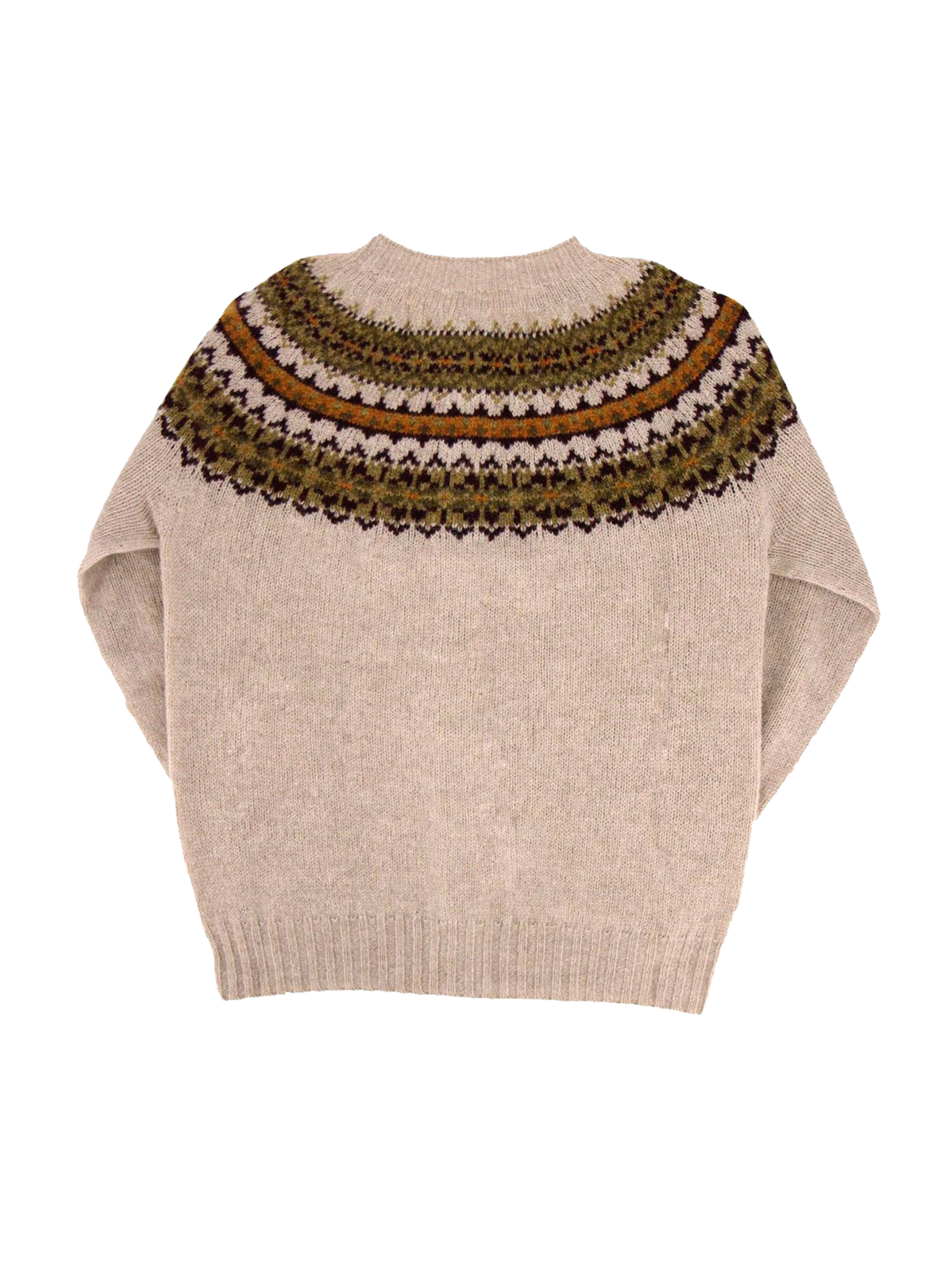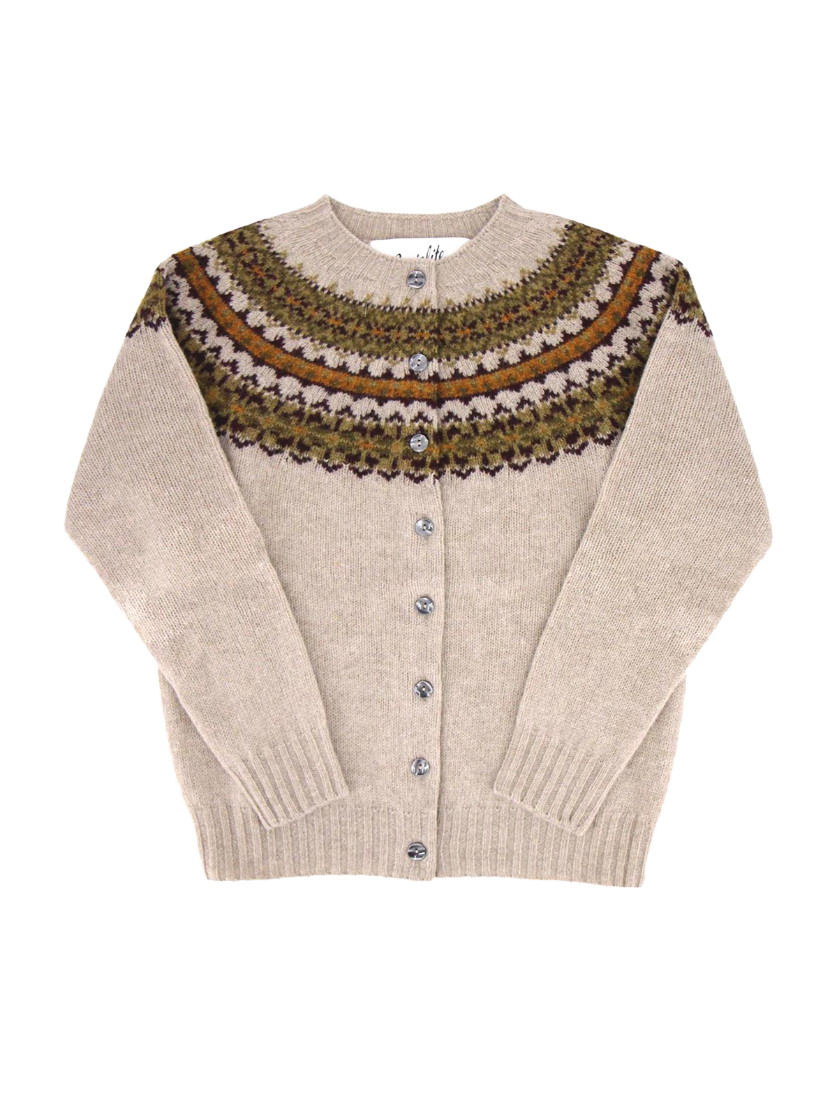 1940s Style Pure Wool Fairisle Cardigan - Ramble Beige
