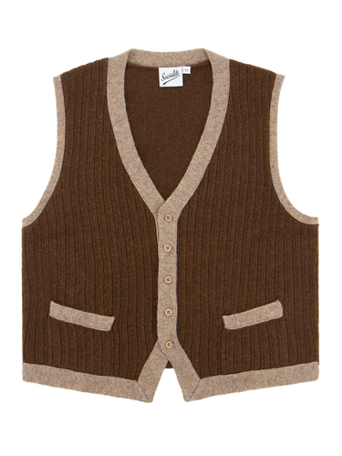 1940s Style Rufus Knitted Waistcoat - Coffee Bar