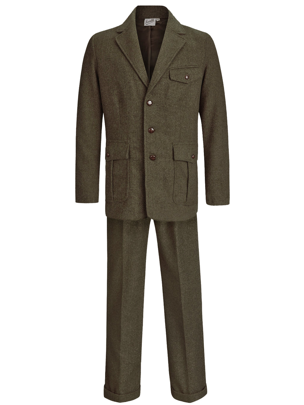 The jacket and trousers are a versatile and neutral dark green shade, sure to pair well with other items in your wardrobe when not worn as a full suit.