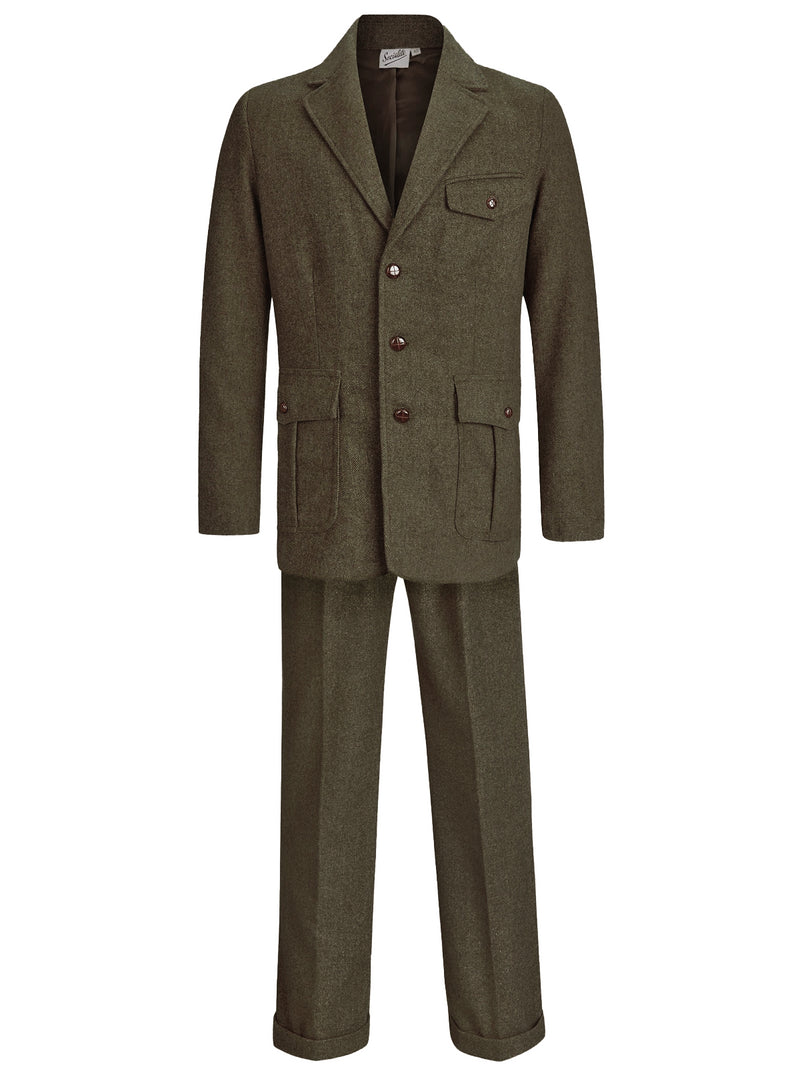 1940s Vintage Clubman Green Herringbone Wool Suit