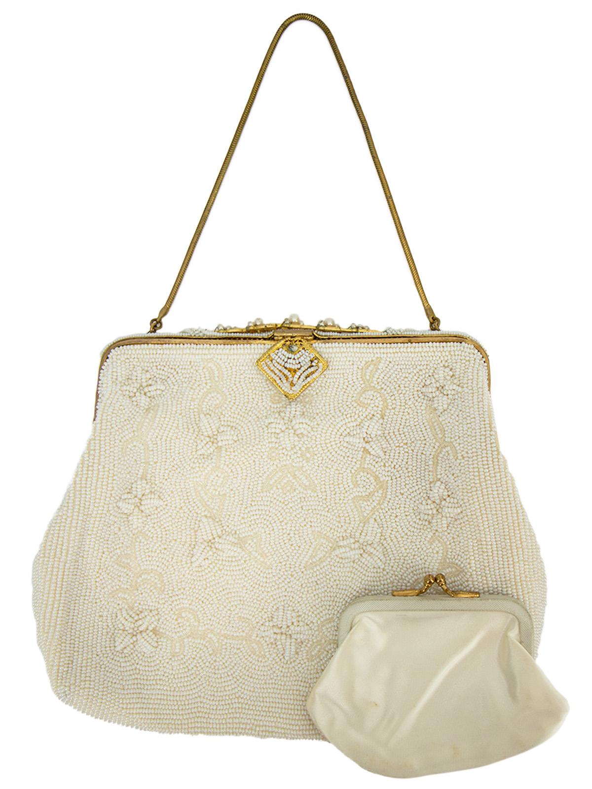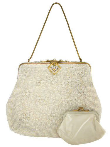 1940s Vintage Cream Beaded Frame Occasion Bag & Purse