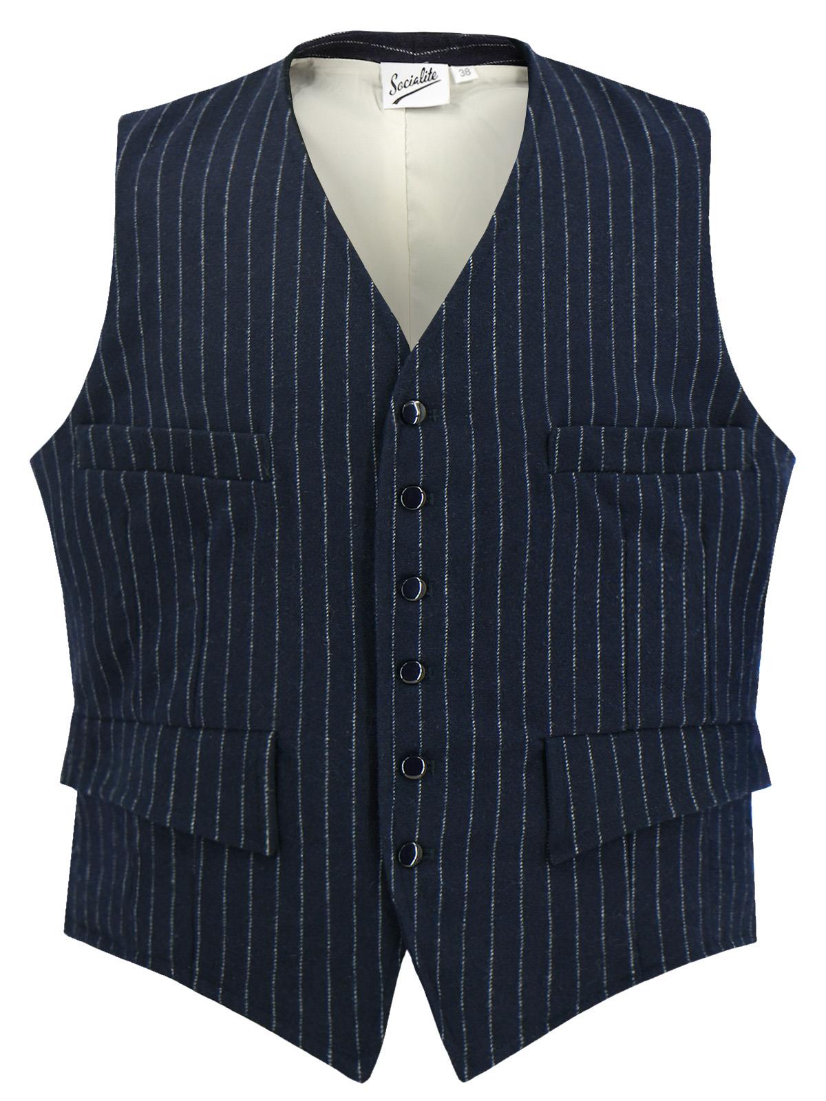 1940s Vintage Deliverance Pinstripe Waistcoat in Navy