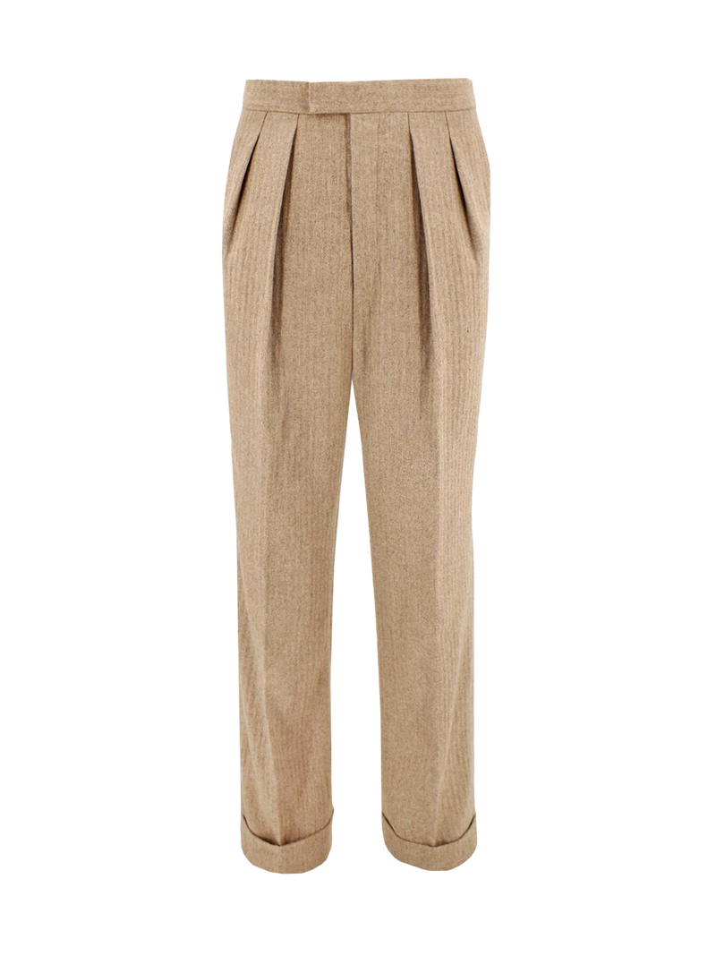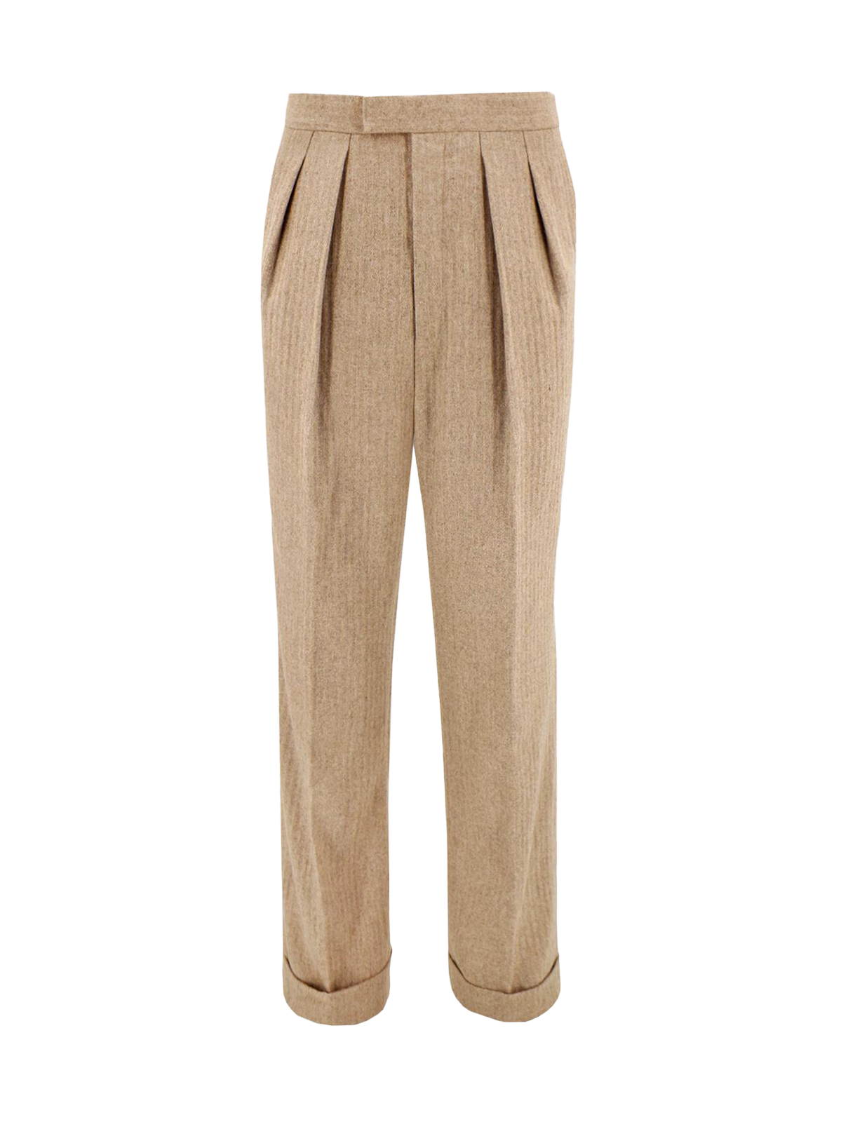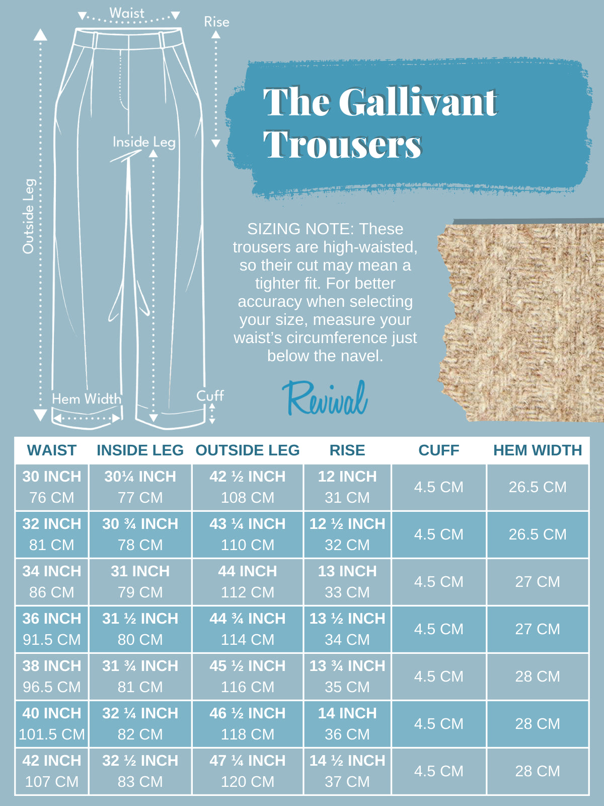Our trousers are designed to be worn high-waisted, sitting higher on the body than most modern trousers. If you typically wear a size 34" or larger, we recommend ordering one size up to ensure a comfortable fit.