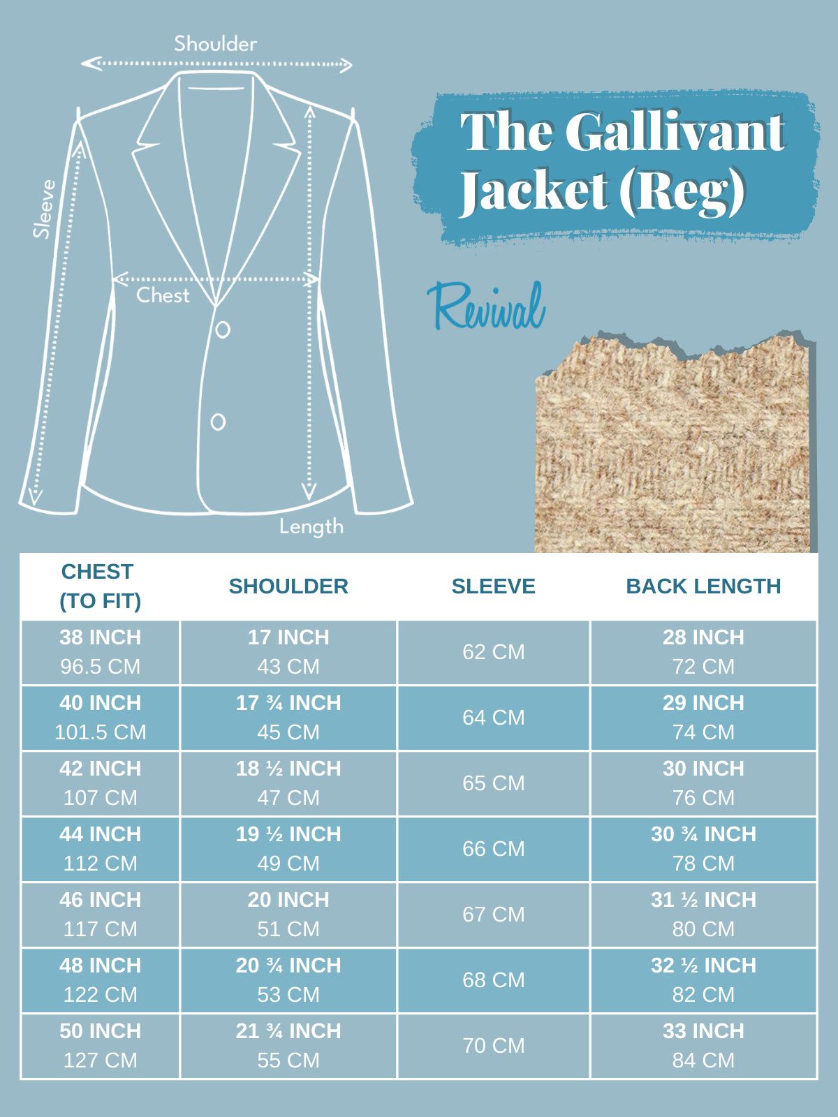 The Gallivant jacket is available in two lengths: short and regular. This listing is for the suit with the regular-length jacket. The trousers are available in one length only.