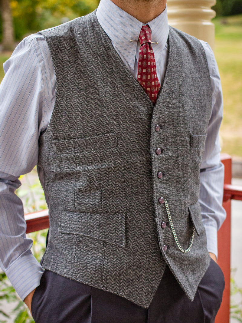 1940s Vintage Granville Herringbone Wool Waistcoat in Grey