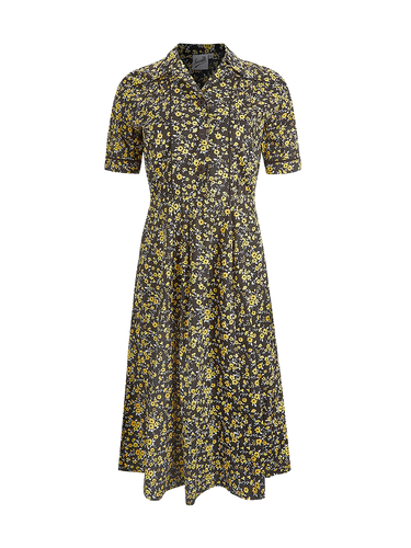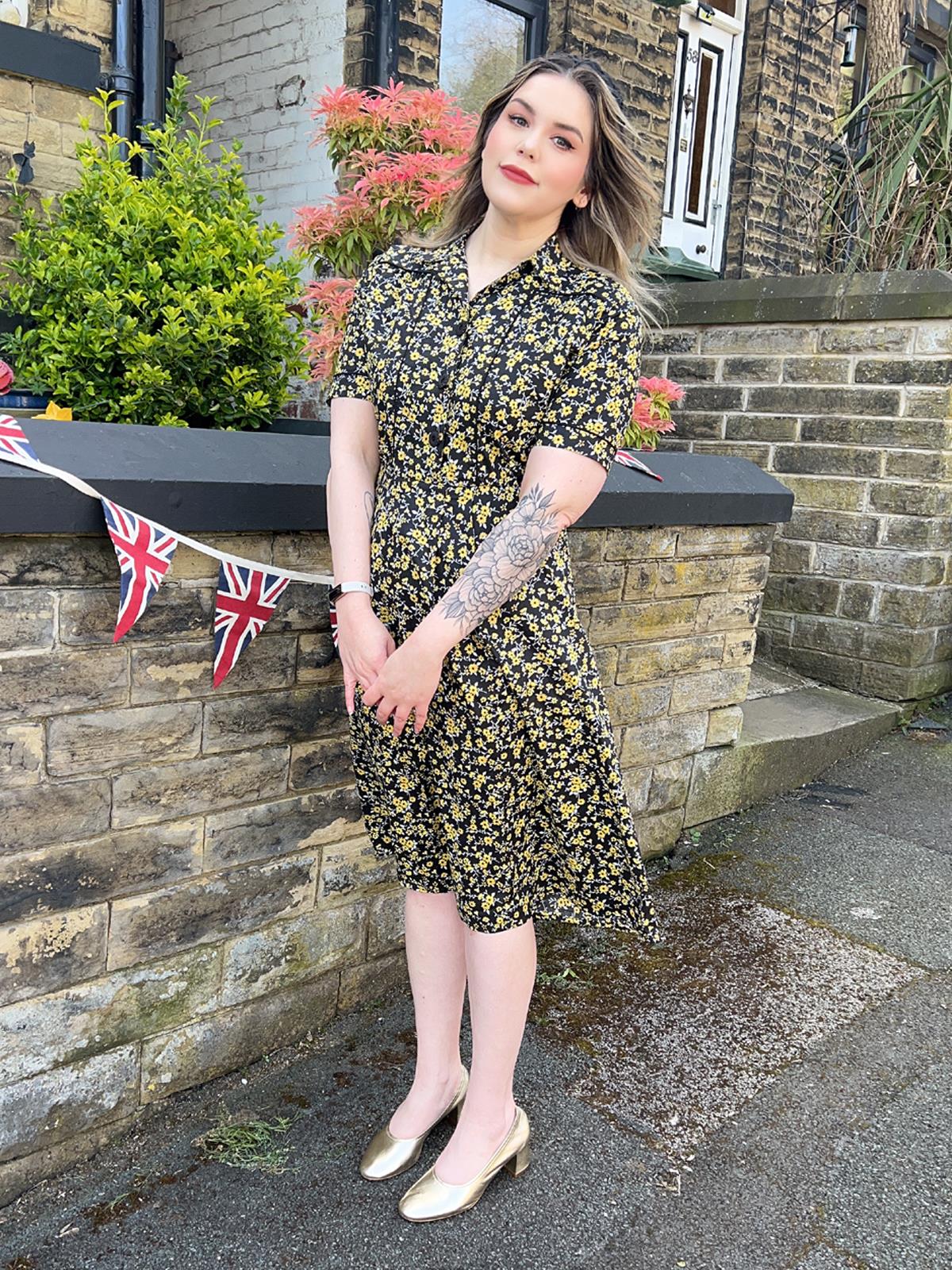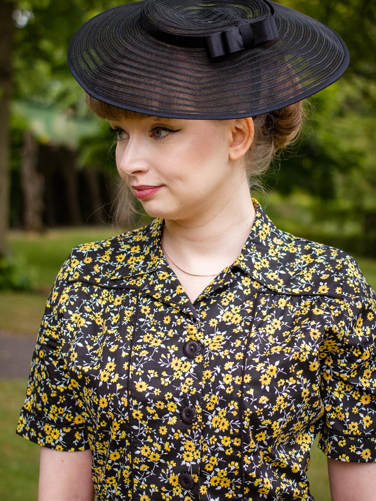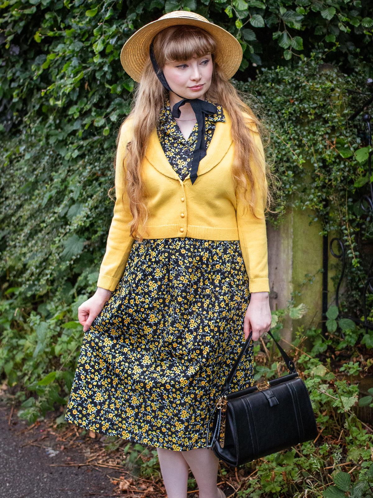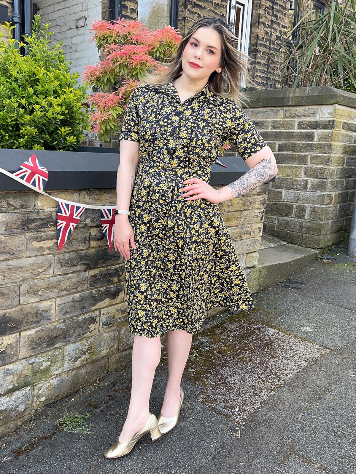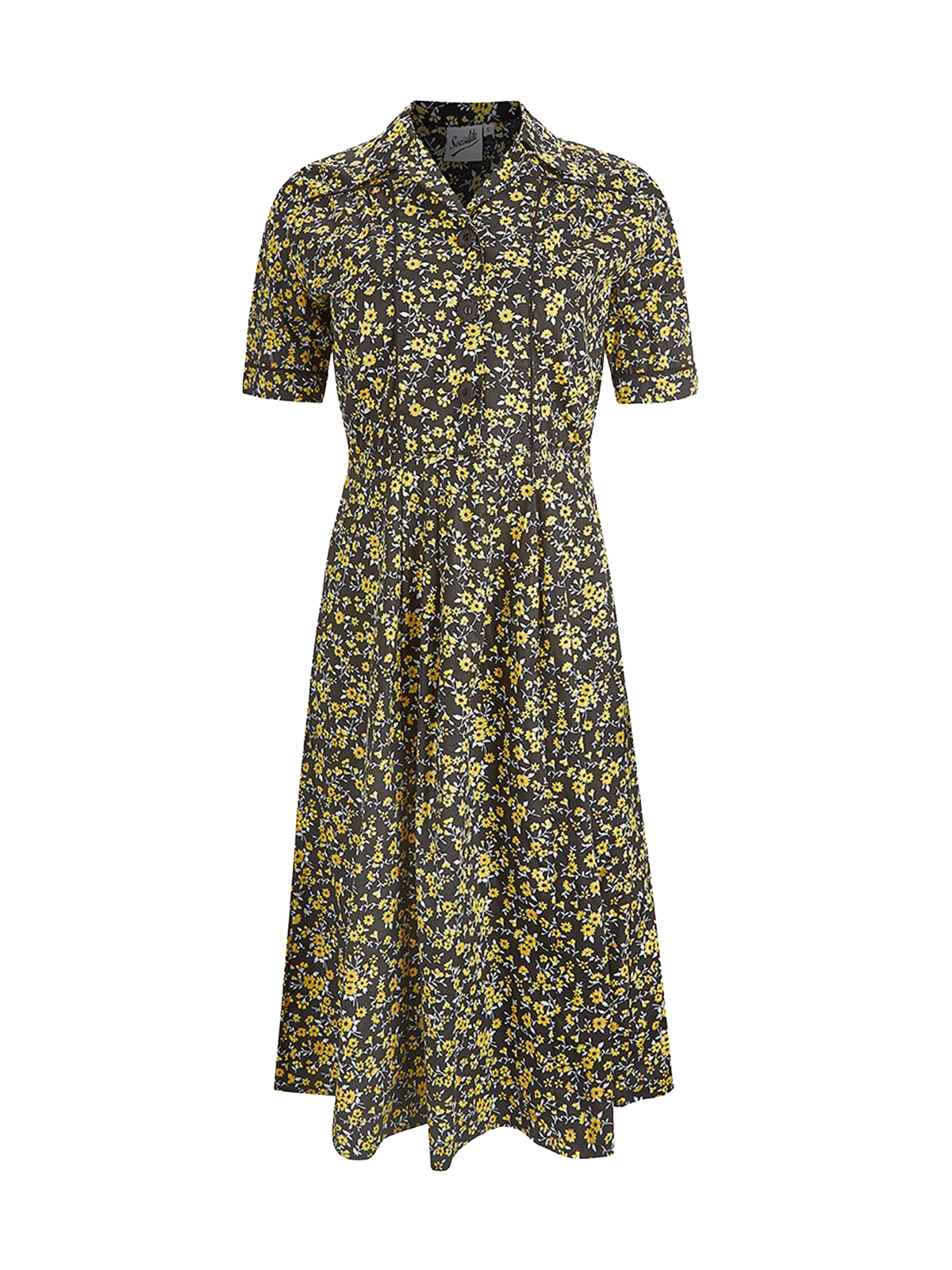 The Harmony dress is a timeless vintage-style shirtwaist style, taken from an original forties garment. The Night Garden colourway is a chic black with yellow and white florals. Made of breathable pure cotton, this is a versatile spring-summer day dress in a classic style that is both flattering and essential in any vintage fashion enthusiast's wardrobe.