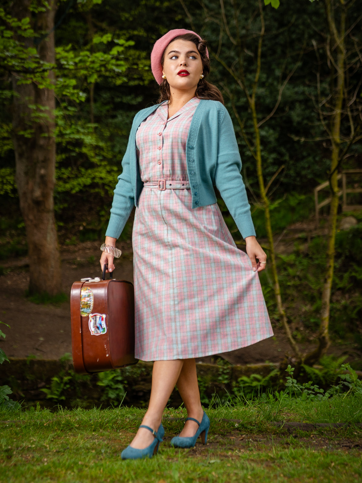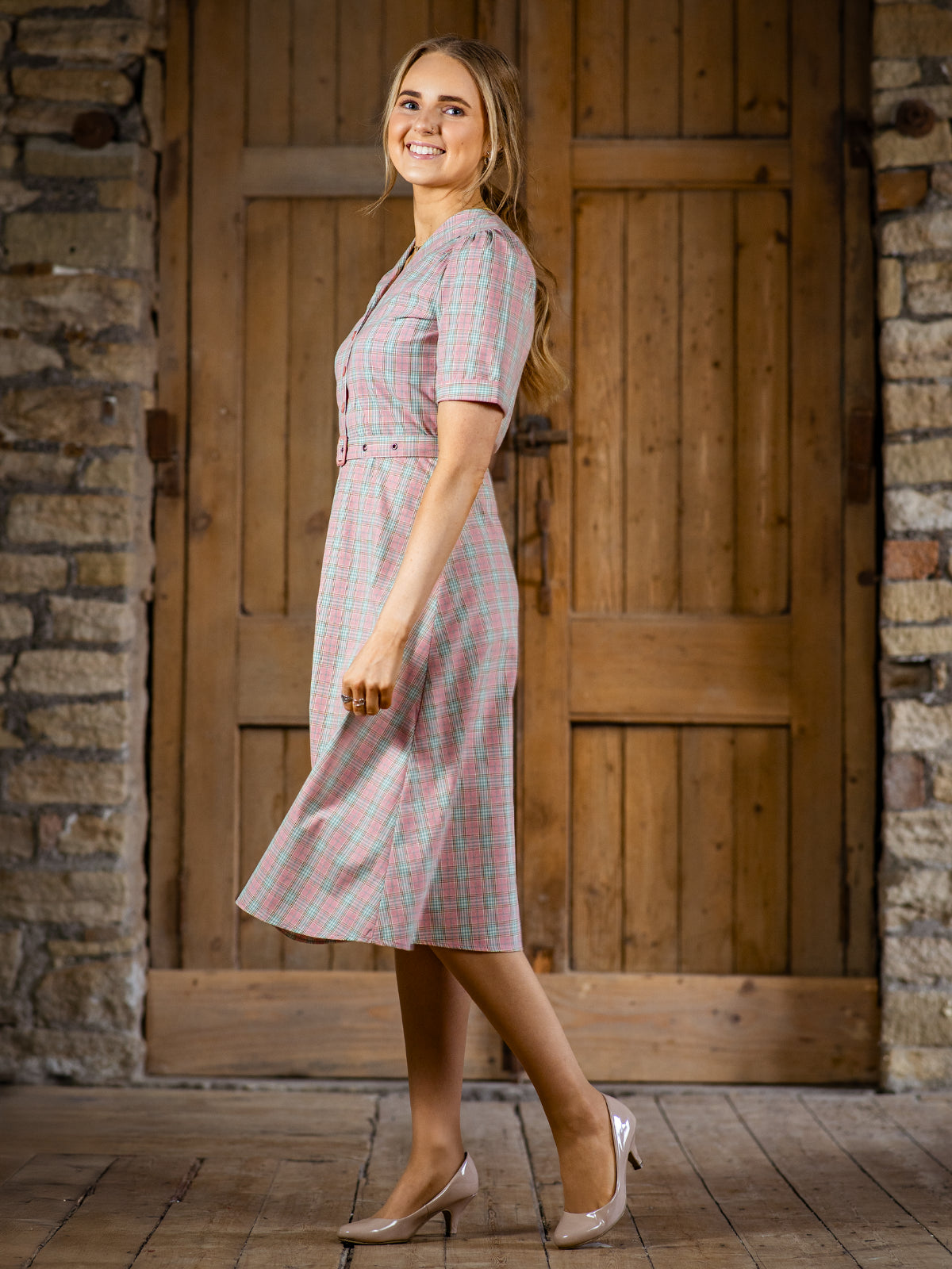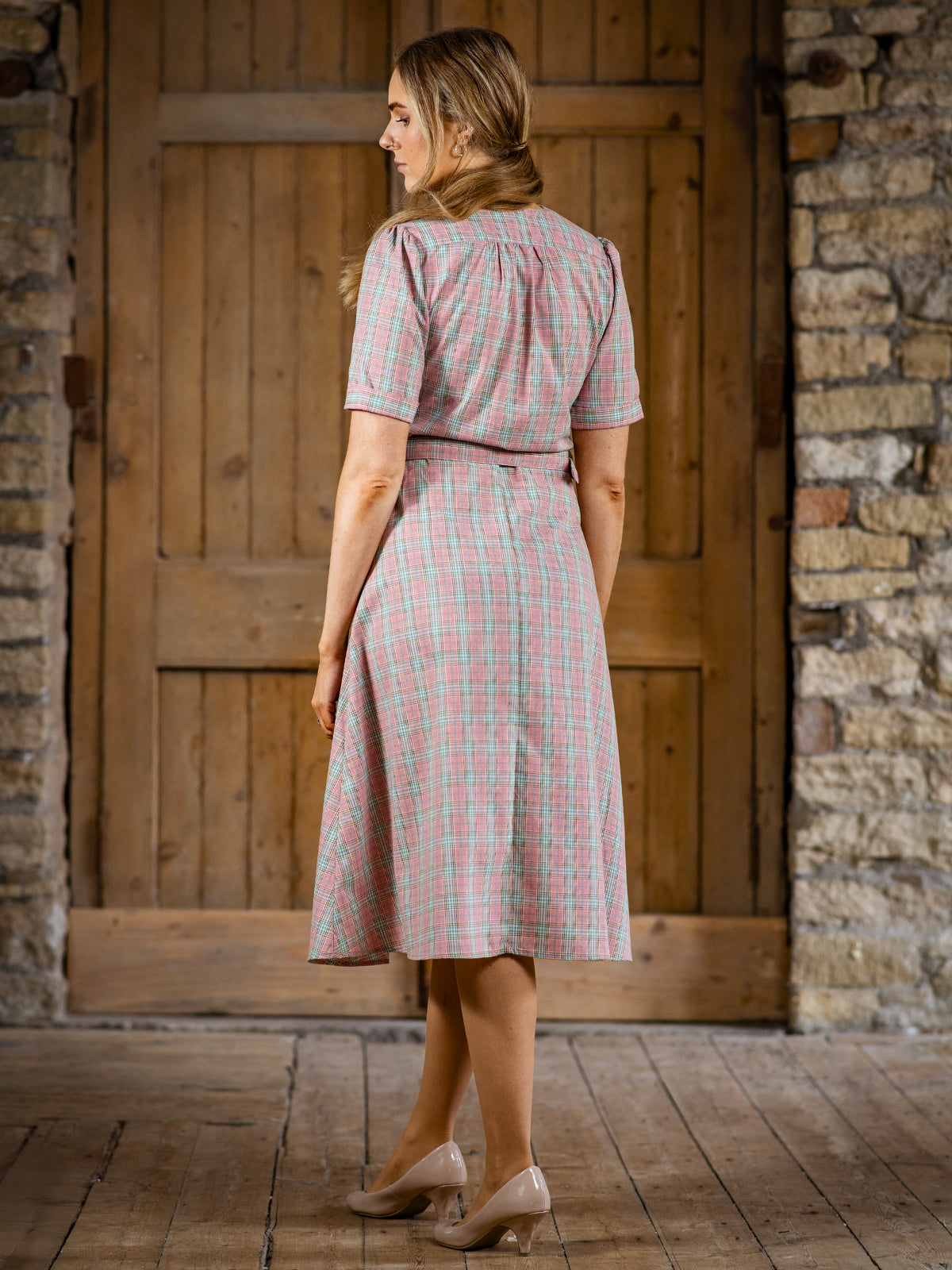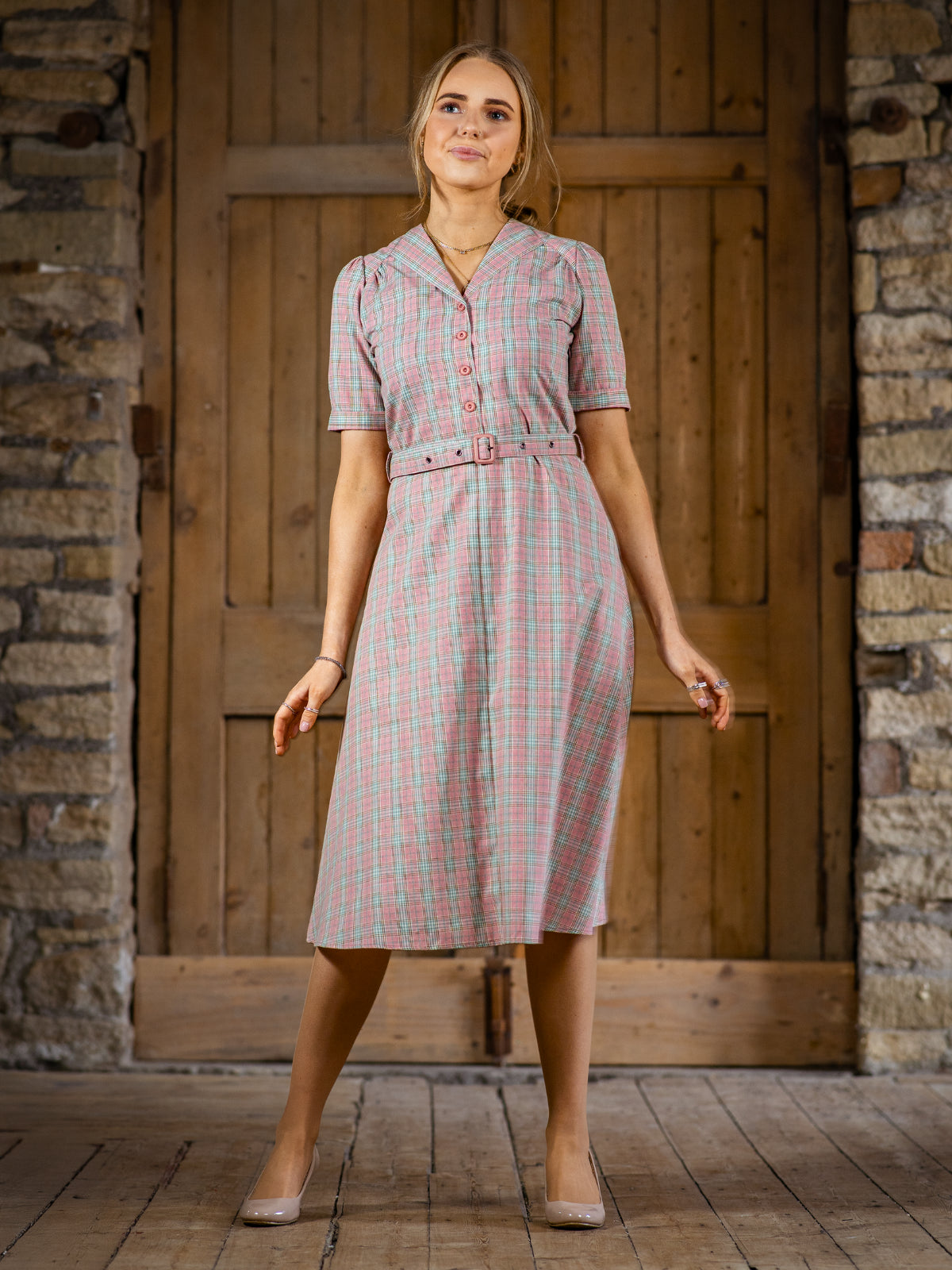 This pink plaid work dress is inspired by the Lumber Jills, female forestry workers who carried out vital work during the Second World War while the men were away fighting.